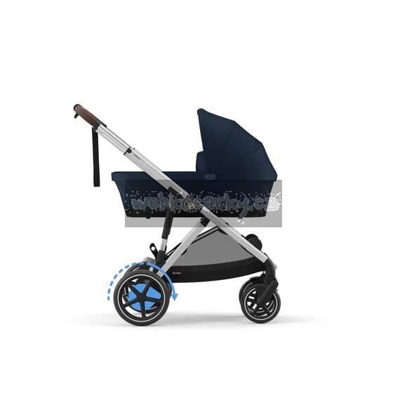 Funkce automatického houpání pohybuje kočárkem e-Gazelle S rytmicky dopředu a dozadu, čímž jemně houpe vaše děťátko, takže je před usnutím klidnější.
