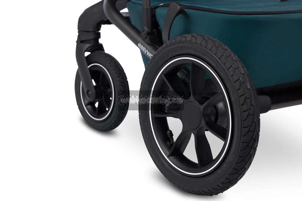 - Součástí kočárku jsou odolná gelová kola i nafukovací kola vhodná do jakéhokoliv terénu