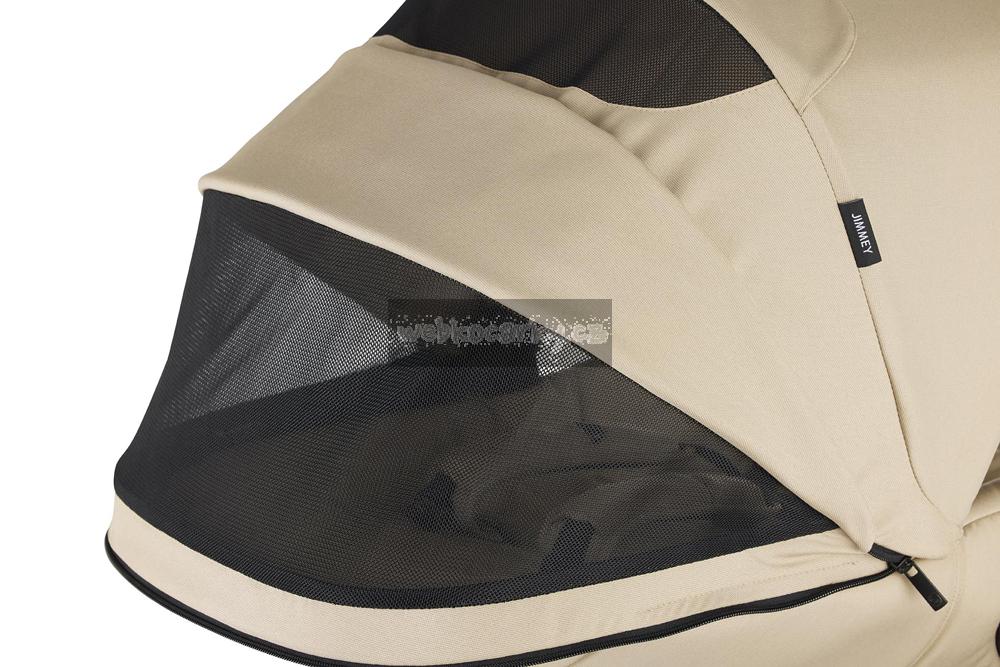 Nenechte se zastavit počasím, s kočárkem Jimmey si můžete užít každou jednu procházku. Díky extra velké stříšce se sluneční clonou, dvěma větracím okénkům a větrání ve spodní části vaničky vás už počasí nikdy nezastaví. Žádný den není příliš chladný ani příliš horký. A pro prvotřídní gumové pneumatiky s extra přilnavostí není problém ani sníh. Jimmey je mimořádně obratný, s vynikajícím odpružením a procházky s ním jsou jako z pohádky na jakémkoli povrchu.