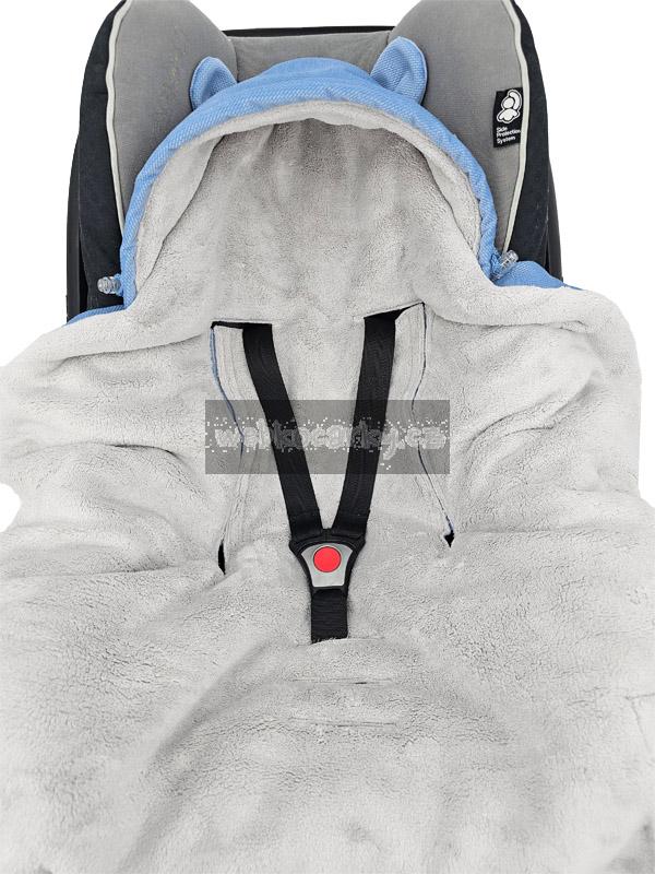 Tento výrobek je určen k použití v autosedačce nebo samostatně. Speciální systém otvorů a úchytů umožňuje jeho upevnění v autosedačce bez nutnosti rozepínání popruhů a po zajištění a upevnění dítěte stačí jen přikrýt. Výhodou je, že nepadá jako deka, ale obepíná celé dítě. Fusak je vhodný pro 3 nebo 5-bodové bezpečnostní pásy. Fusak do autosedačky je vybaven systémem otvorů na pásy, kompatibilní s většinou autosedaček, zapíná se na suchý zip Vhodné pro děti od 3-18 měsíců.