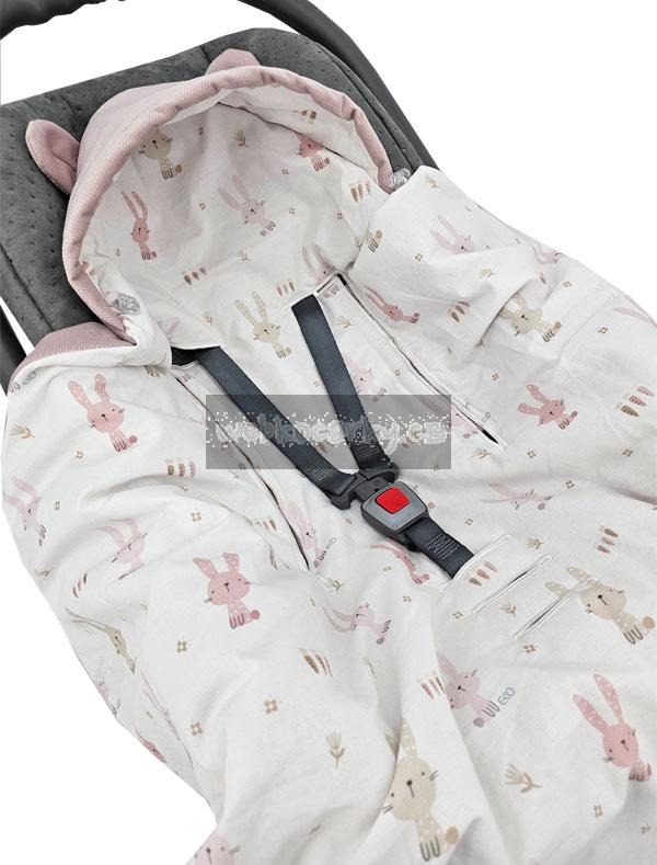 EKO Vak na spaní do autosedačky Velvet Bunny pink