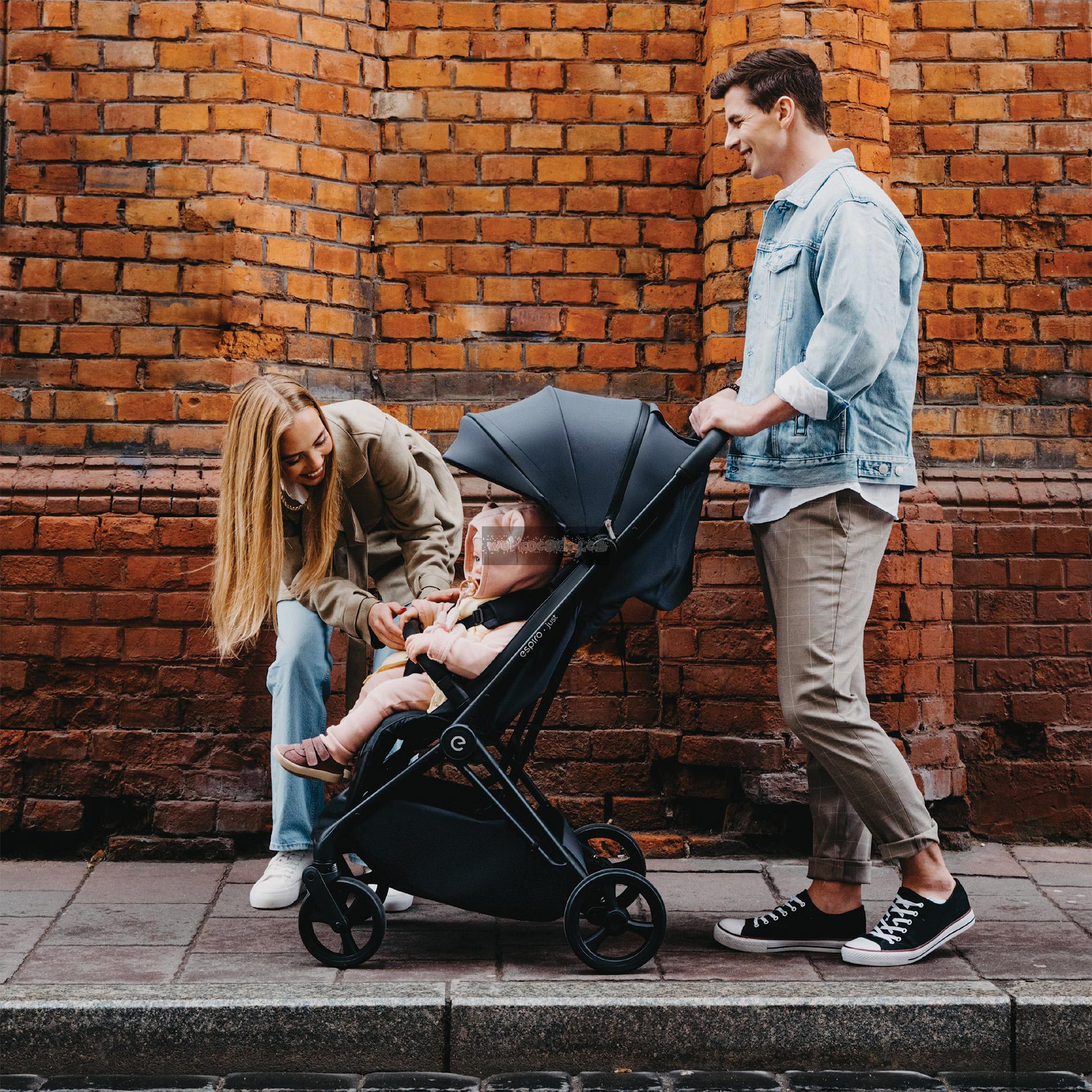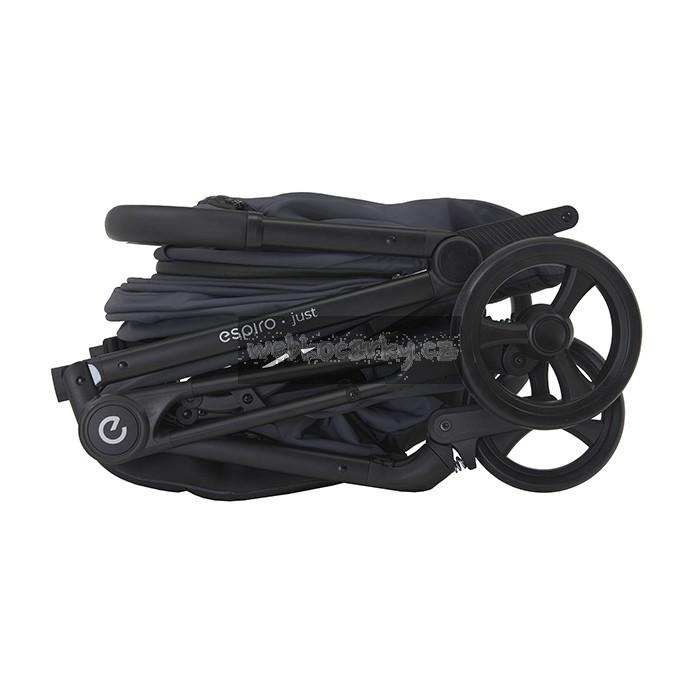 Espiro Just je kočárek s věkovou kategorií 0+. Proto je vhodný jak pro novorozence, tak pro děti do 22 kg. Kočárek Espiro Just je kombinací funkčnosti a designu. Vyznačuje se velkými koly, díky kterým se nemusíte starat o povrch, po kterém se má kočárek pohybovat.