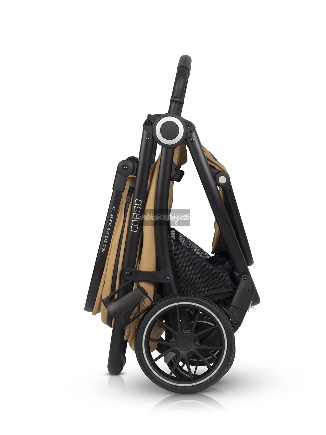 - Čalounění Corso má reflexní potisky a dokončovací prvky, díky nimž bude kočárek lépe viditelný ze všech stran, což zvyšuje bezpečnost při večerních procházkách,