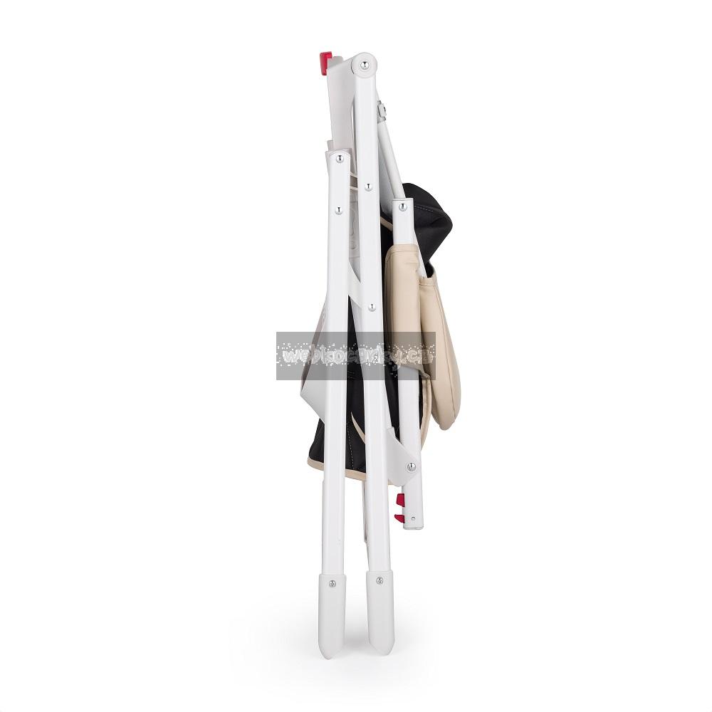 Navzdory kompaktním rozměrům je židle vybavena prostorným prošívaným sedadlem z PU, 3-bodovými bezpečnostními pásy, odnímatelným podnosem a nastavitelnou opěrkou nohou. Když vaše dítě dojí, židle se během několika vteřin bez námahy složí.