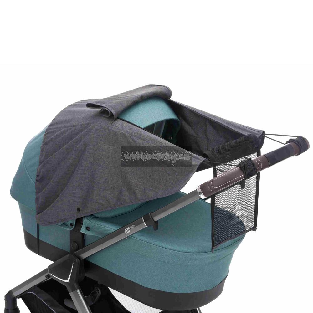 Sluneční clonu lze připevnit na jakýkoli kočárek pomocí gumičky a popruhů. Součástí je průhledné okénko, které se snadno otevírá a zavírá pomocí suchého zipu a vy tak můžete mít vaše dítě stále na očích. Sluneční clona je připevněna na horní část kočárku, tudíž se do kočárku dostává dostatek čerstvého vzduchu.