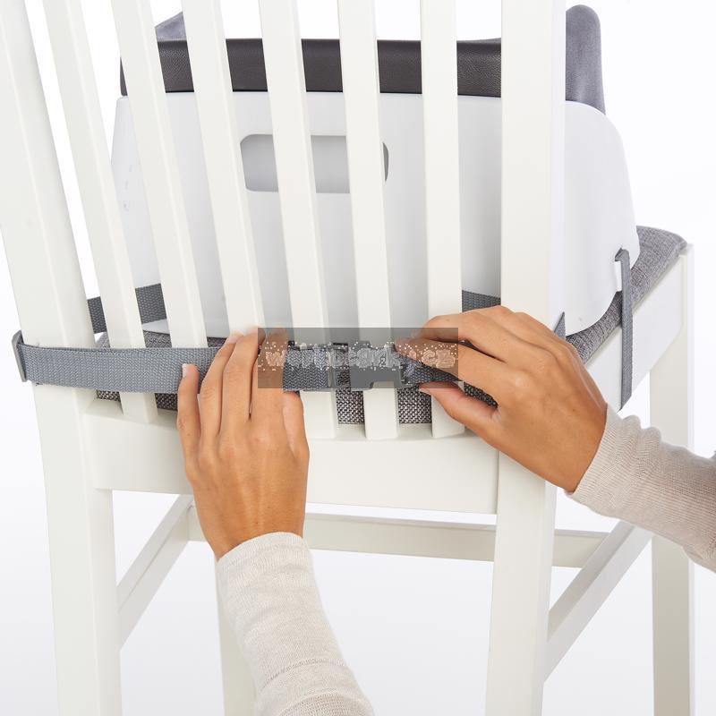 - podsedák lze bezpečnostními popruhy připevnit k židli, což umožňuje používat jej téměř u každého stolu