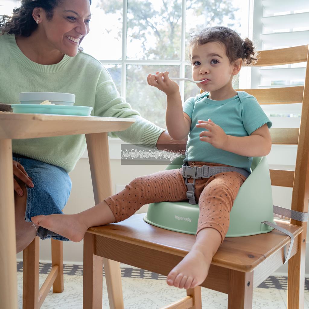 Přechod od vysoké jídelní židle ke stolu nebyl nikdy jednodušší! Podsedák My Spot od Ingenuity je ideální podsedák, který vašemu děťátku zajistí místo přímo u stolu, aby se cítil jako velký! Zvládne i ty největší nepořádky – základna se jednoduše utírá vlhkým hadříkem a popruhy jsou odnímatelné a pratelné. O bezpečnost se postará 3-bodový bezpečnostní pás, který udrží vaše děťátko pevně na místě během jídla. Podsedák je kompatibilní s většinou jídelních židlí, je lehký, kompaktní a snadno přenosný, takže jej můžete mít doma i na cestách. Součást barevné kolekce Sun Valley od Ingenuity, která spojuje funkčnost a hravost. Skvělý tip na dárek pro budoucí rodiče - praktický a stylový pomocník do každodenního života.