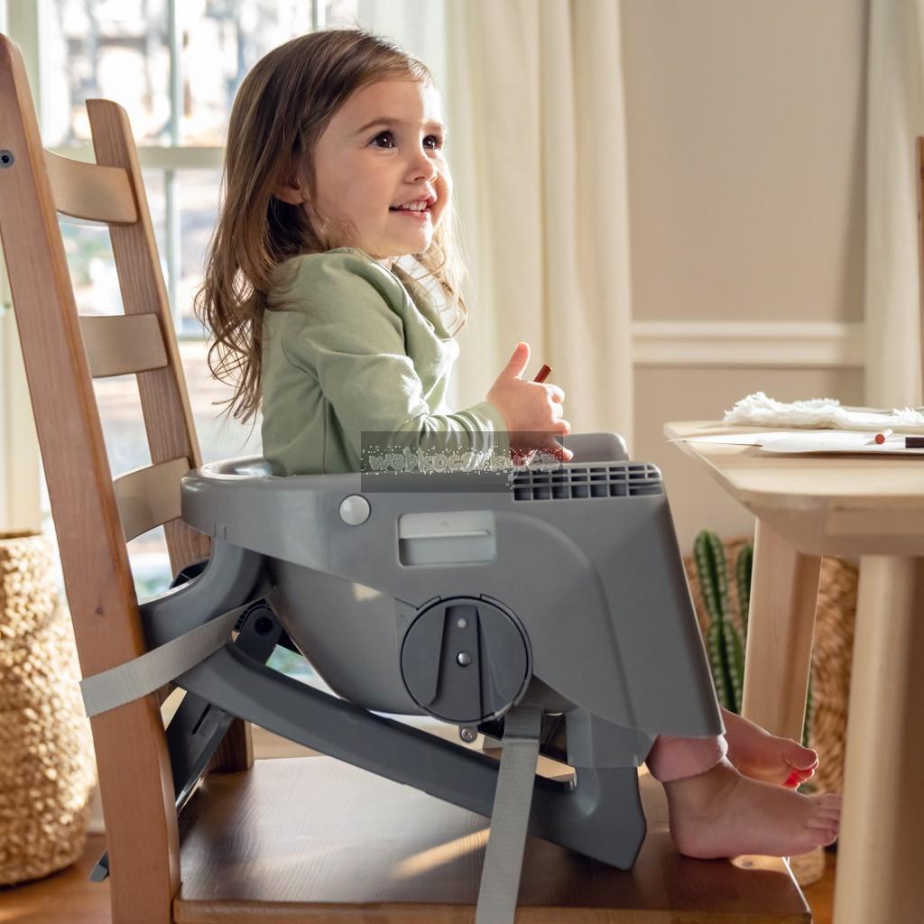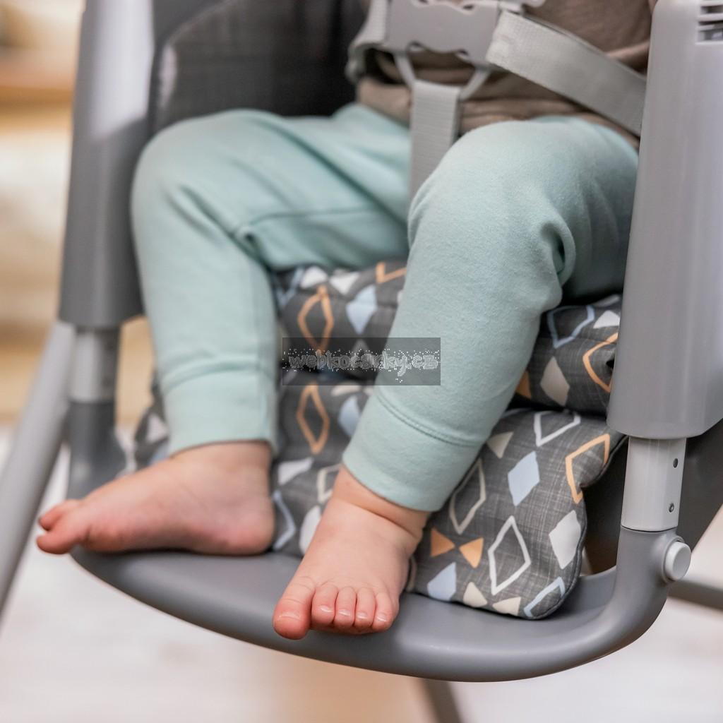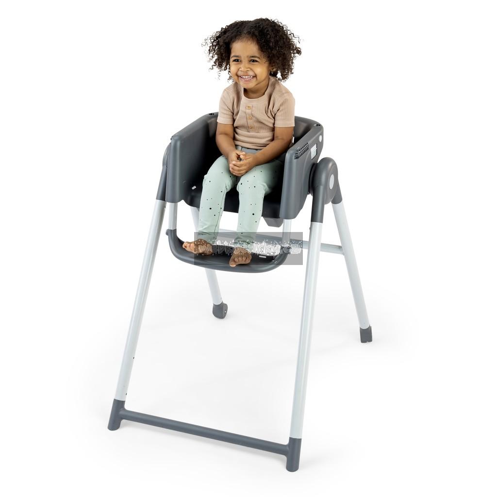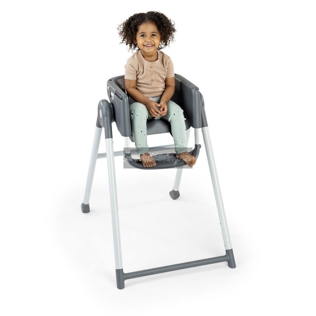 Ergonomický design židle pomáhá s posturální stabilitou, zatímco vícepolohová nastavitelná opěrka nohou zabraňuje visení nohou a nabízí větší pohodlí, aby se dítě mohlo soustředit na jídlo. Design sezení 90/90/90 udržuje nohy dítěte v optimální poloze v 90stupňovém úhlu, čímž podporuje pohodlí a správné držení těla. Sedací podložku a vložku lze prát v pračce.