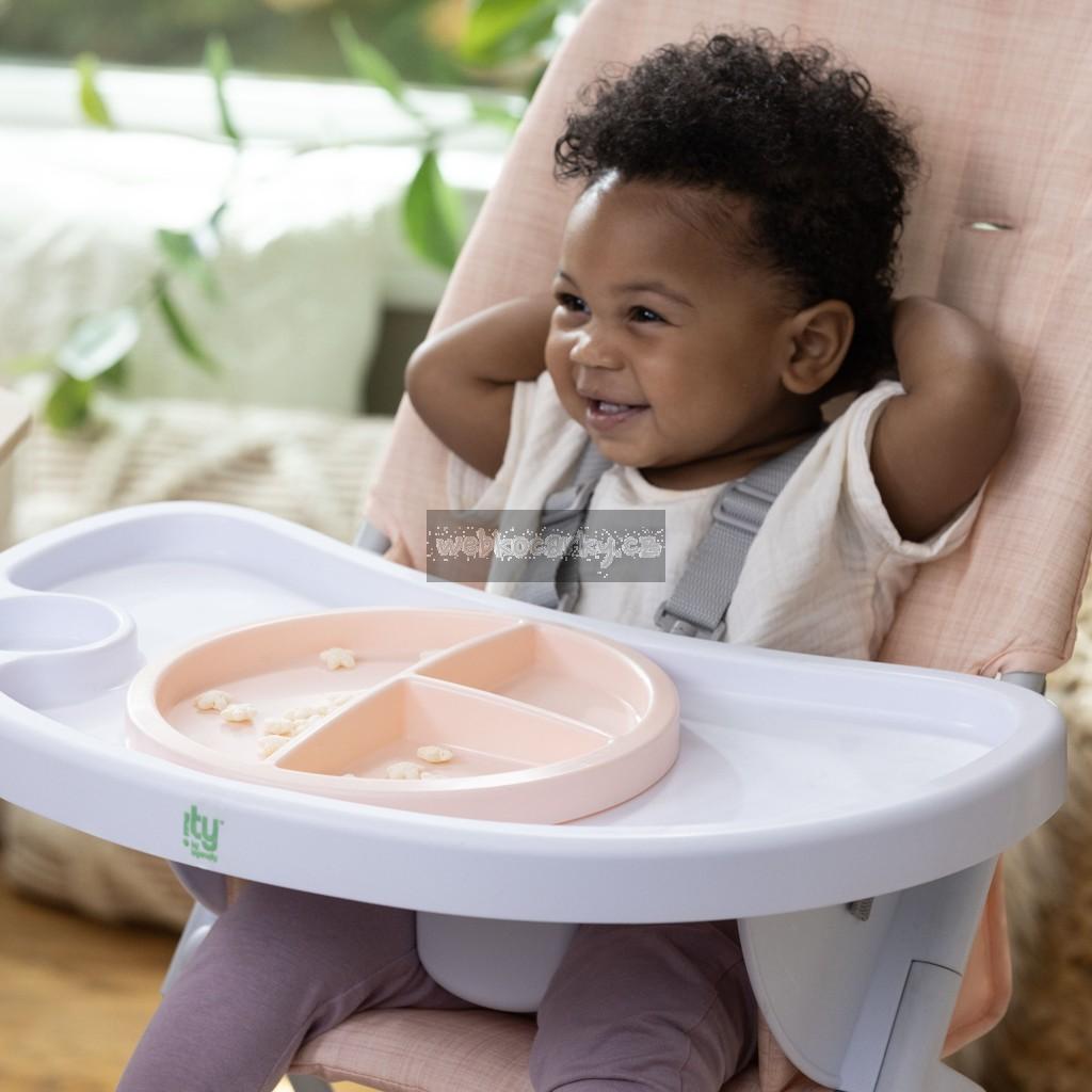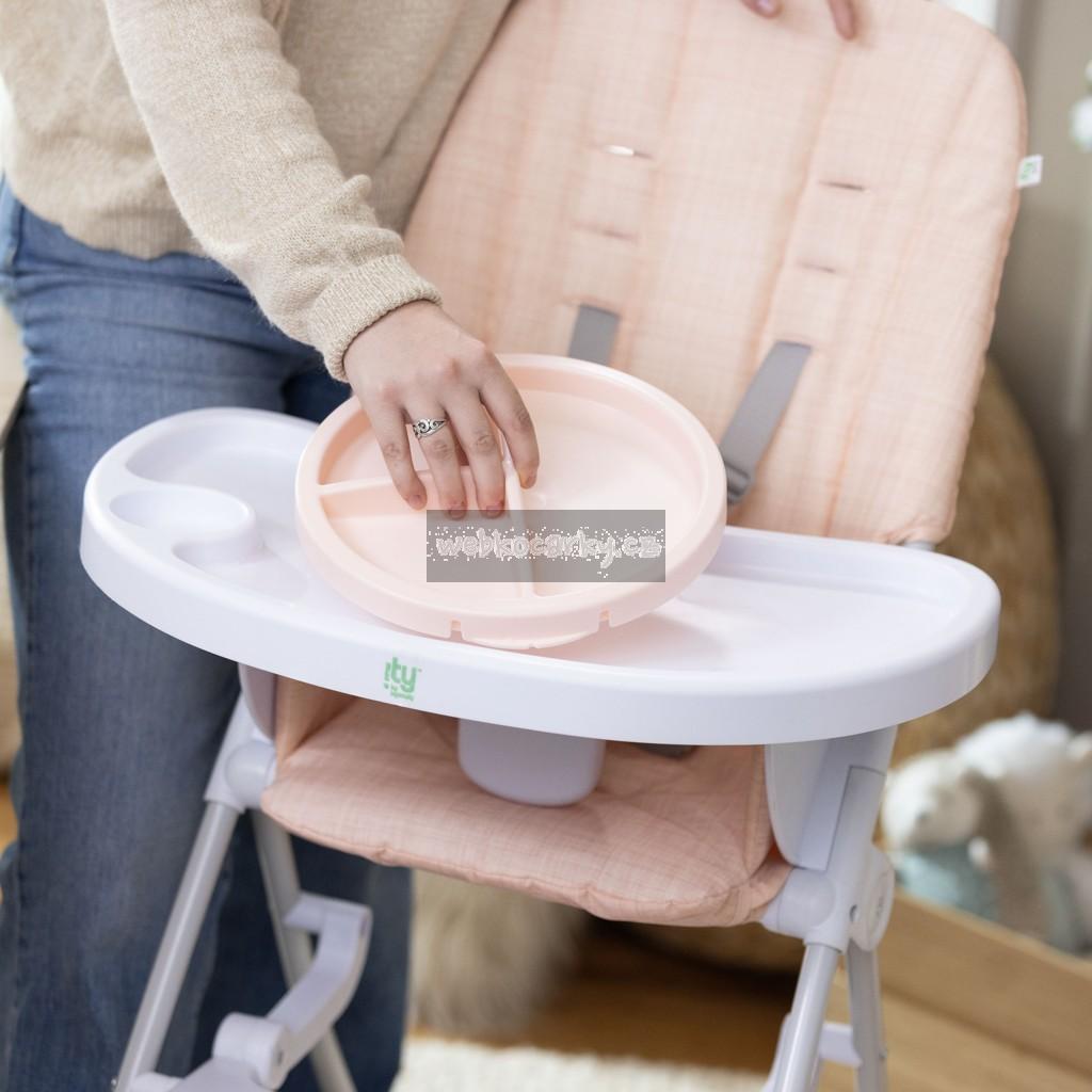 - Příprava jídla bude pro rodiče jednoduchá, protože talíř Twist & Dine lze ohřívat v mikrovlnné troubě! Kromě toho, jak dítě roste, velký pultík se nastavuje do 3 poloh; pultík se při skladování připevňuje k opěradlu židle.