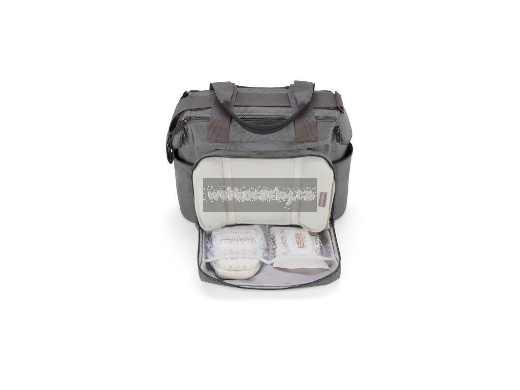 - Vybavená omyvatelnou cestovní přebalovací podložkou (rozměry: 58,5 x 34,5 cm).