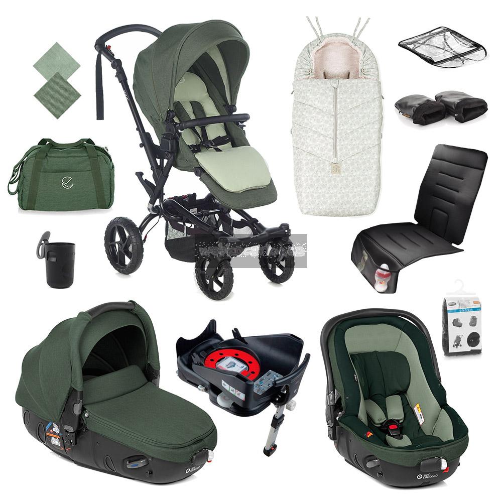 V ceně kočárku je podvozek s otočným sportovním sezením + hluboká korba MICRO, pláštěnka na sportovní kočárek, košík na nákupy, ochranný návlek na madlo a přebalovací taška v barvě kočárku + autosedačka Koos.
