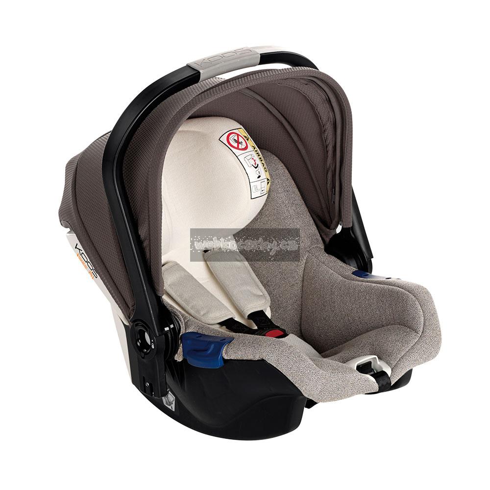 Autosedačka 0-13kg KOOS iSize se stříškou je určena dětem od 40 – 83 cm, skupina 0+, možnost nasazení na všechny typy podvozků kočárků JANÉ, systém Pro-Fix – připevnění a uvolnění pouze jednou rukou. KOOS iSize je prostorná a velmi lehká autosedačka, jejíž konstrukce zajišťuje vysokou odolnost proti nárazům. Nastavitelná opěrka hlavy do 5 poloh. Mechanismus výškových nastavení lze ovládat s dítětem v autosedačce.
