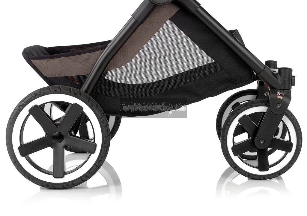Kombinovaný kočárek Crosslight od Jané je nejlehčí a nejpraktičtější variantou kočárku. Je pevný a lehký díky hliníkovému podvozku, který je vybaven velkými koly, jež jsou ideální pro procházky ve městě i v horách.