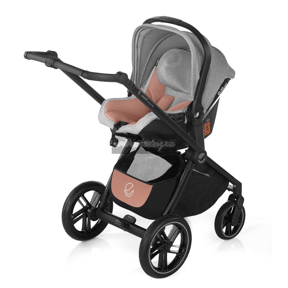Kočárek JANÉ MUUM Pro je univerzální sportovní a hluboký kočárek s možností připojení na konstrukci kočárku Micro Pro vaničku (skládací vaničku), autosedačku KOOS iSize R1 nebo sportovní část (v ceně kočárku jsou všechny tyto části).