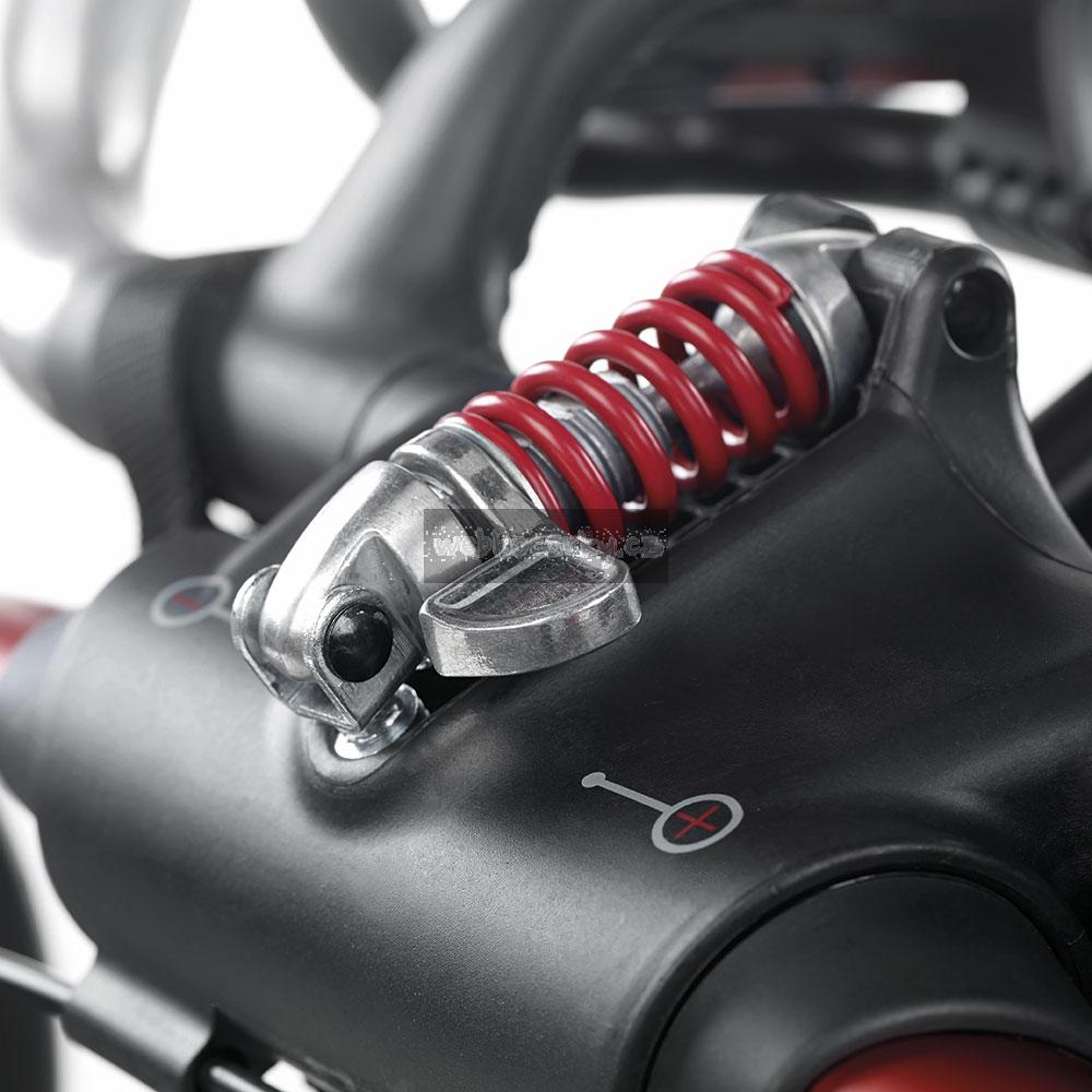 Lze napolohovat do třech pozic + jednu s označením P (parking), která umožní podvozek složit a s nasazeným sedákem.