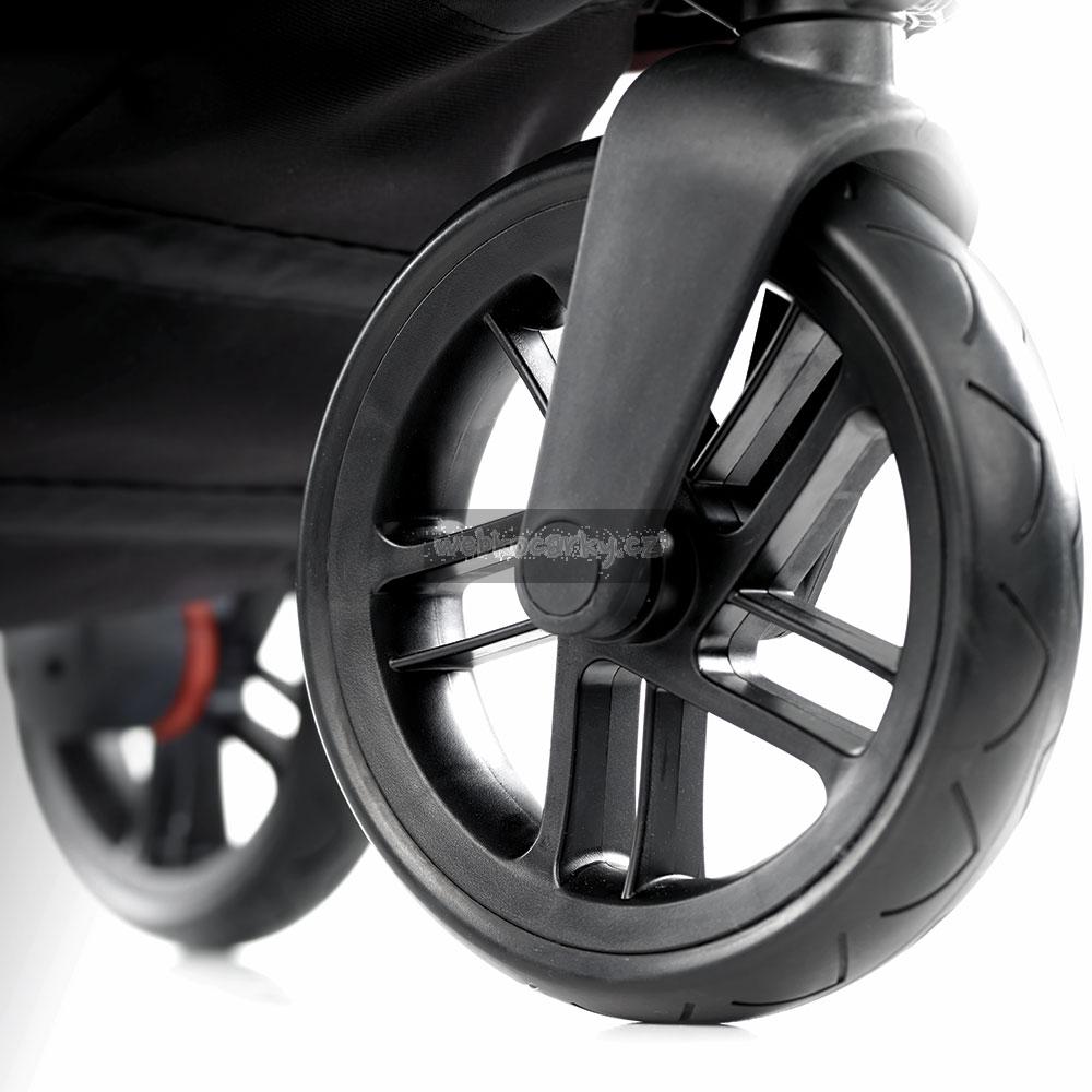 Má velká PU kola, přední s možností aretace. Zadní náprava s odpružením ve tvaru písmene C pro pohodlnou a volnou chůzi.