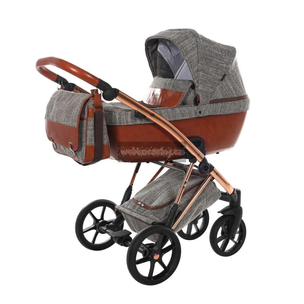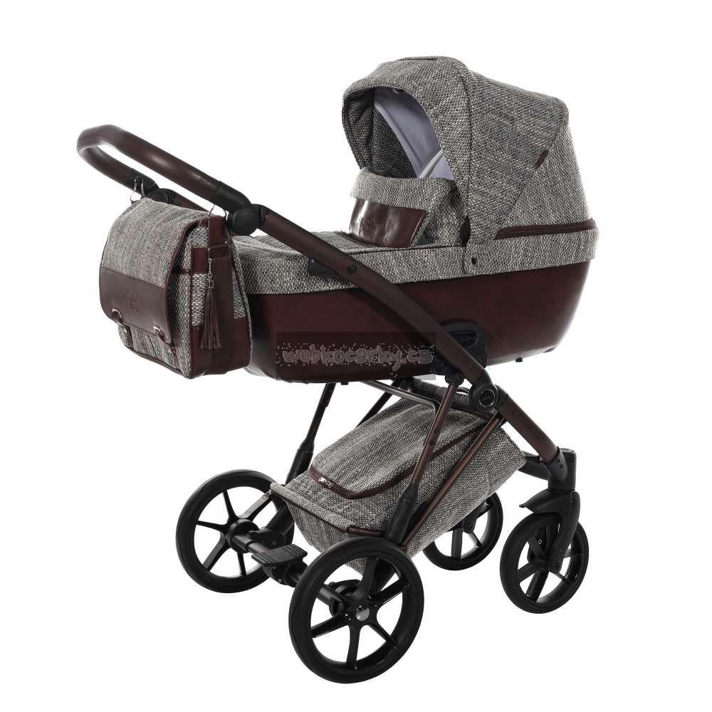 Koženkový košík pod kočárkem zvládne velkou nálož, je uzavíratelný na zip. Prach a špína nemá šanci - jednoduše se prach nebo bláto z koženky setře.