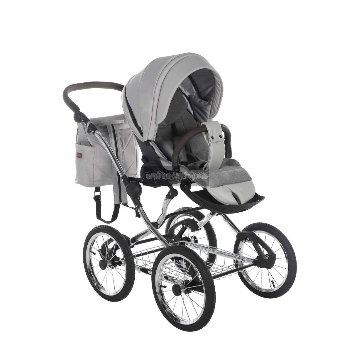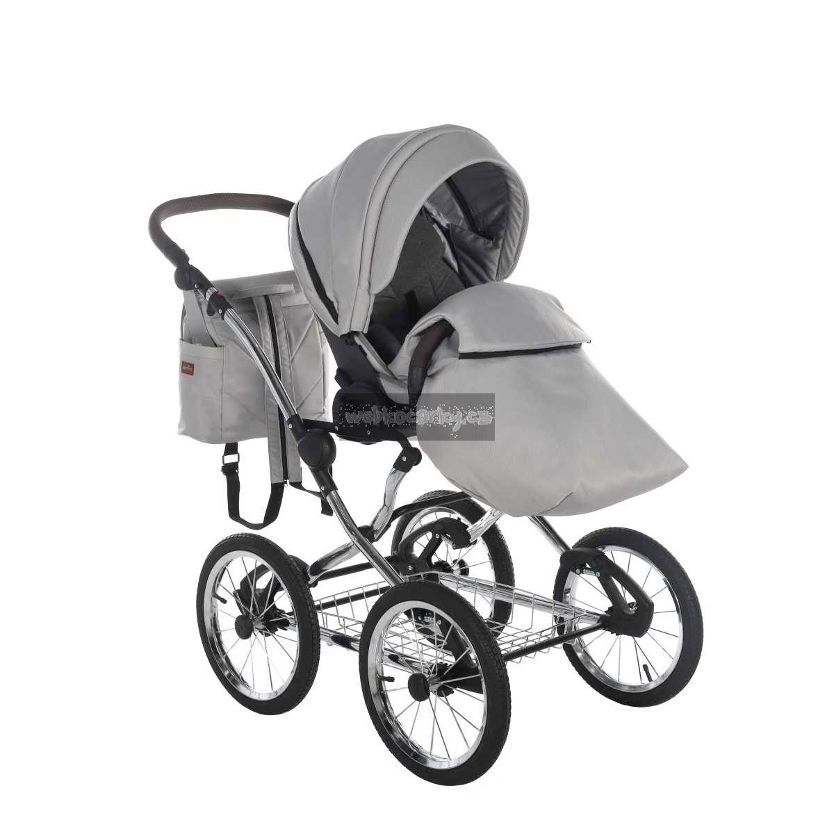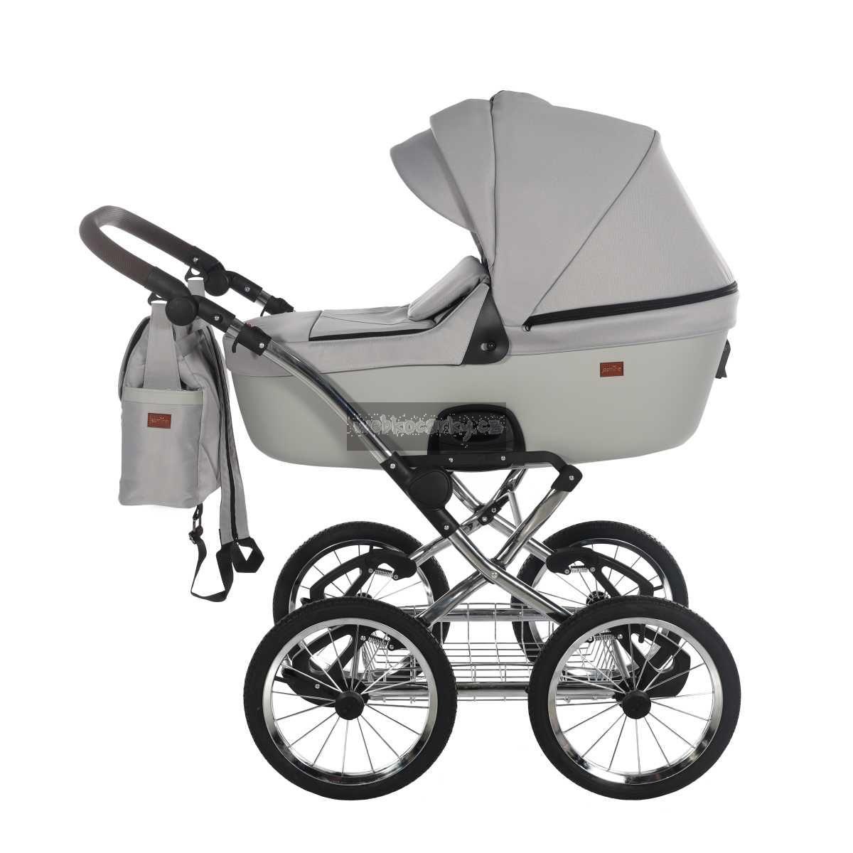 Klasický rám v retro stylu s drátěným košíkem pod kočárkem - provedení chrom.