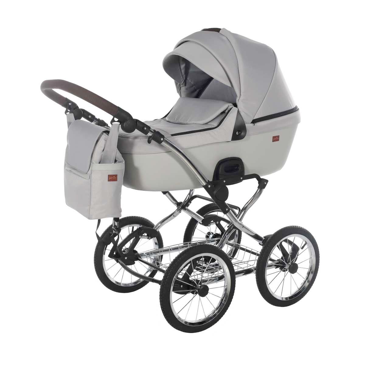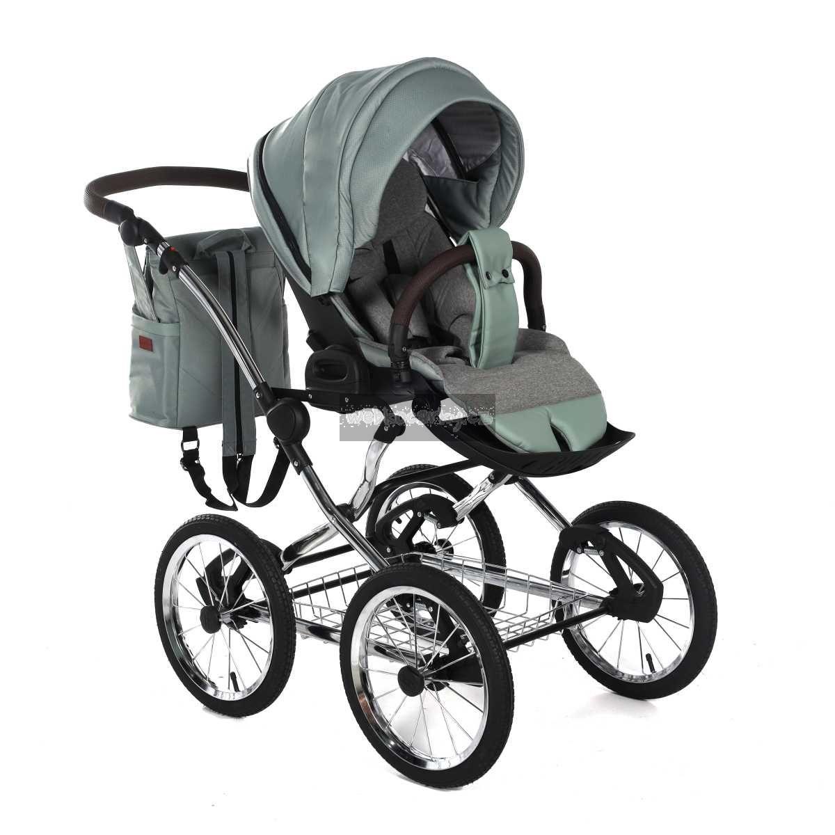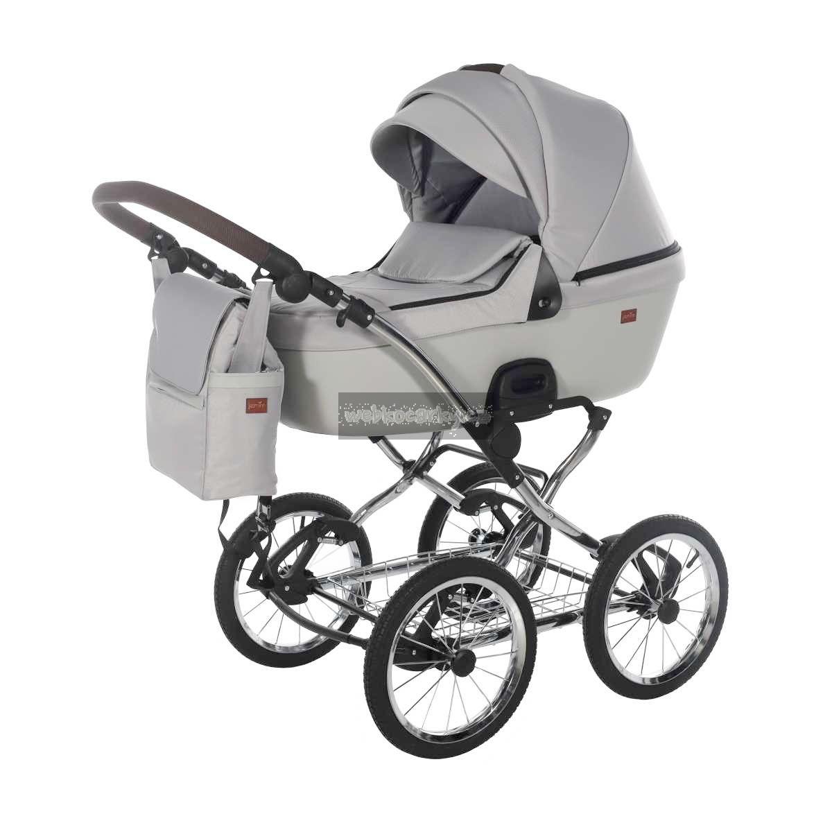Klasický rám v retro stylu s drátěným košíkem pod kočárkem - provedení chrom.