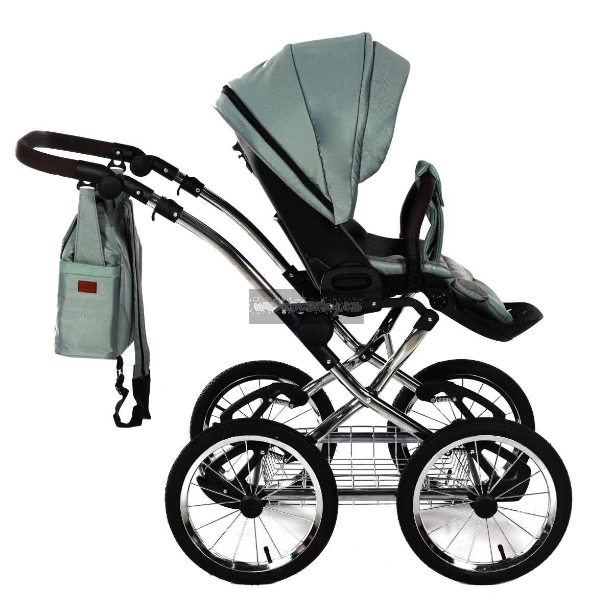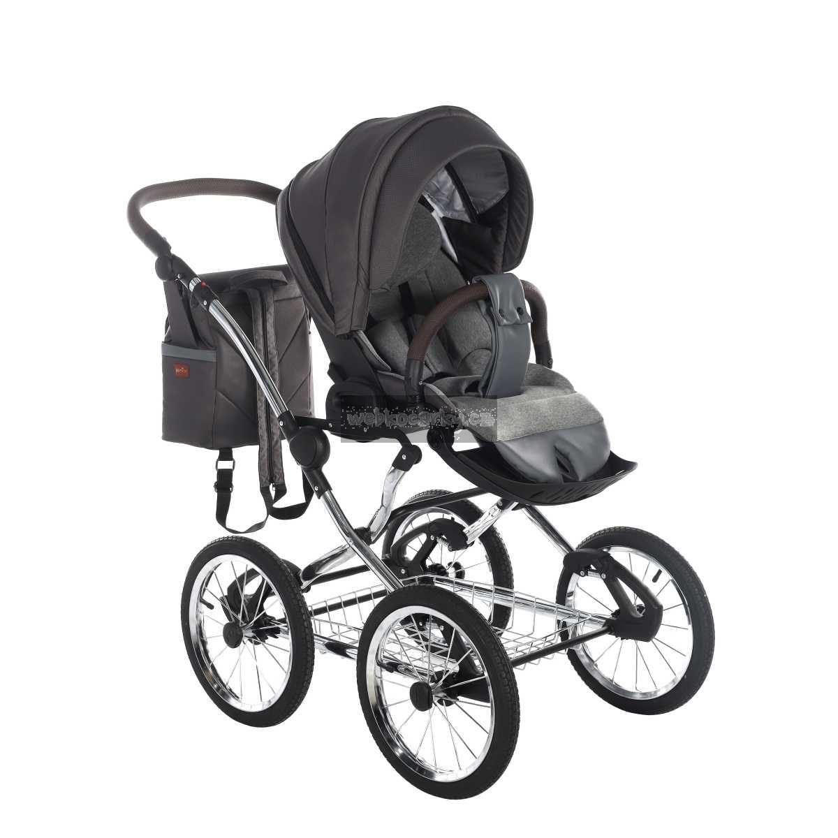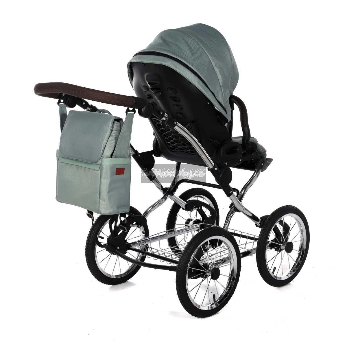 - Použity moderní látky: paropropustné, pro udržení ideálního klimatu v kočárku + eko kůže