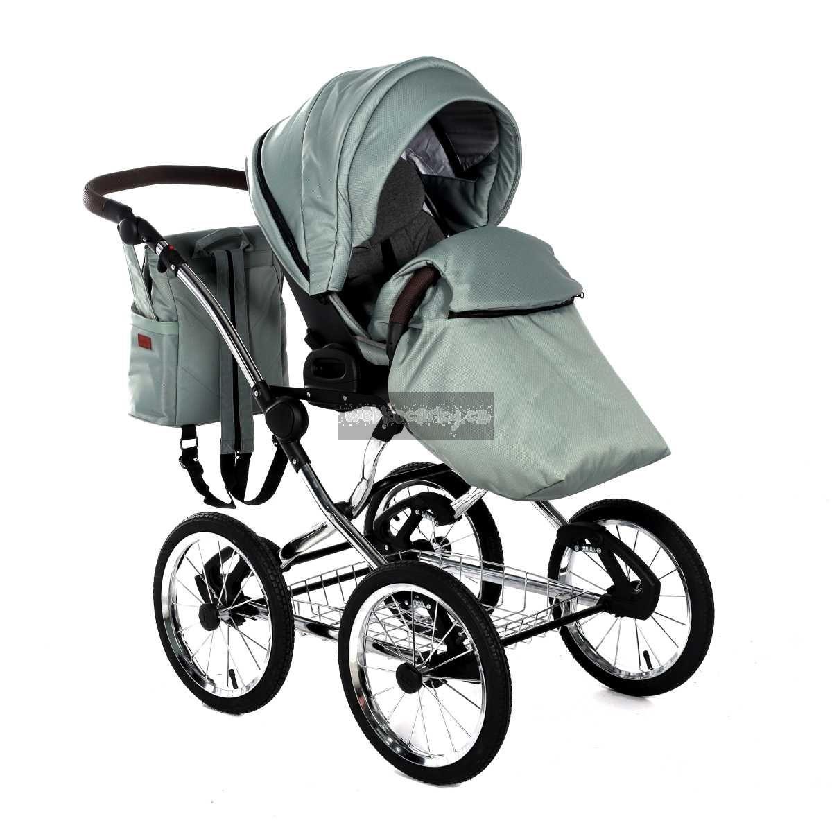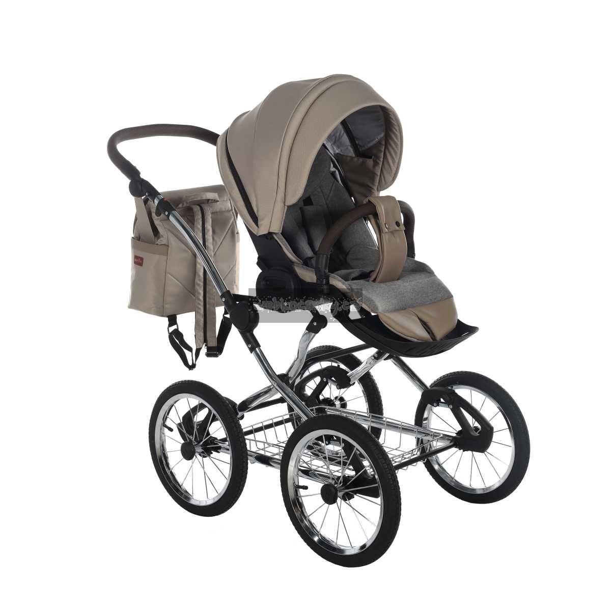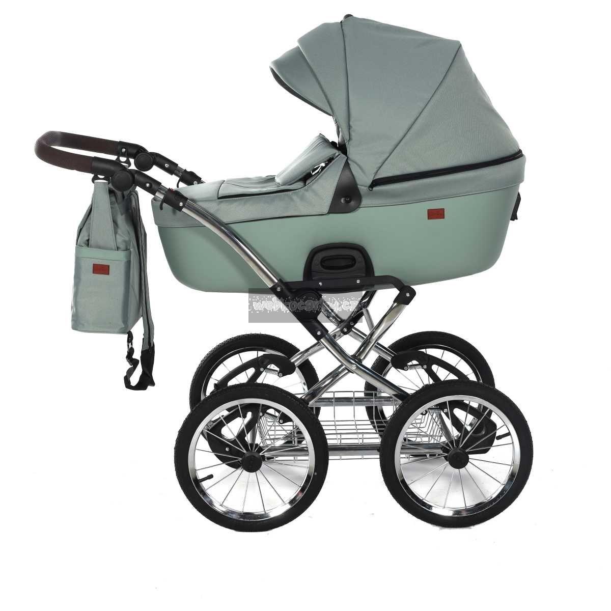 - Použity moderní látky: paropropustné, pro udržení ideálního klimatu v kočárku + eko kůže