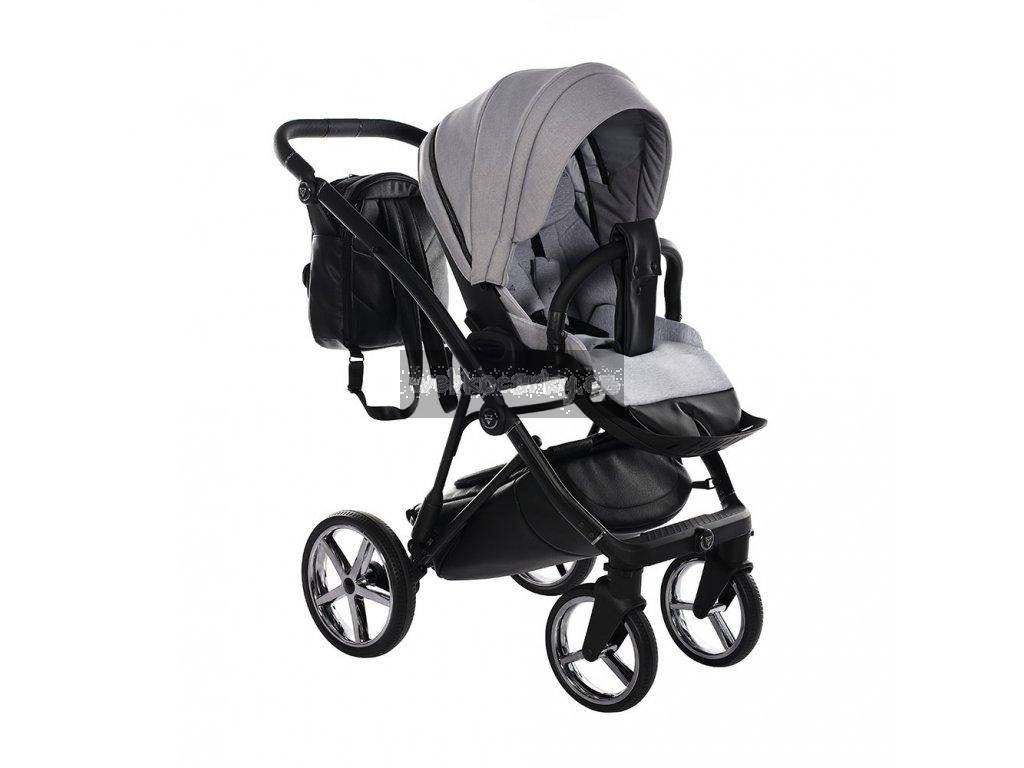 Kočárek je vyroben v technickém stylu.