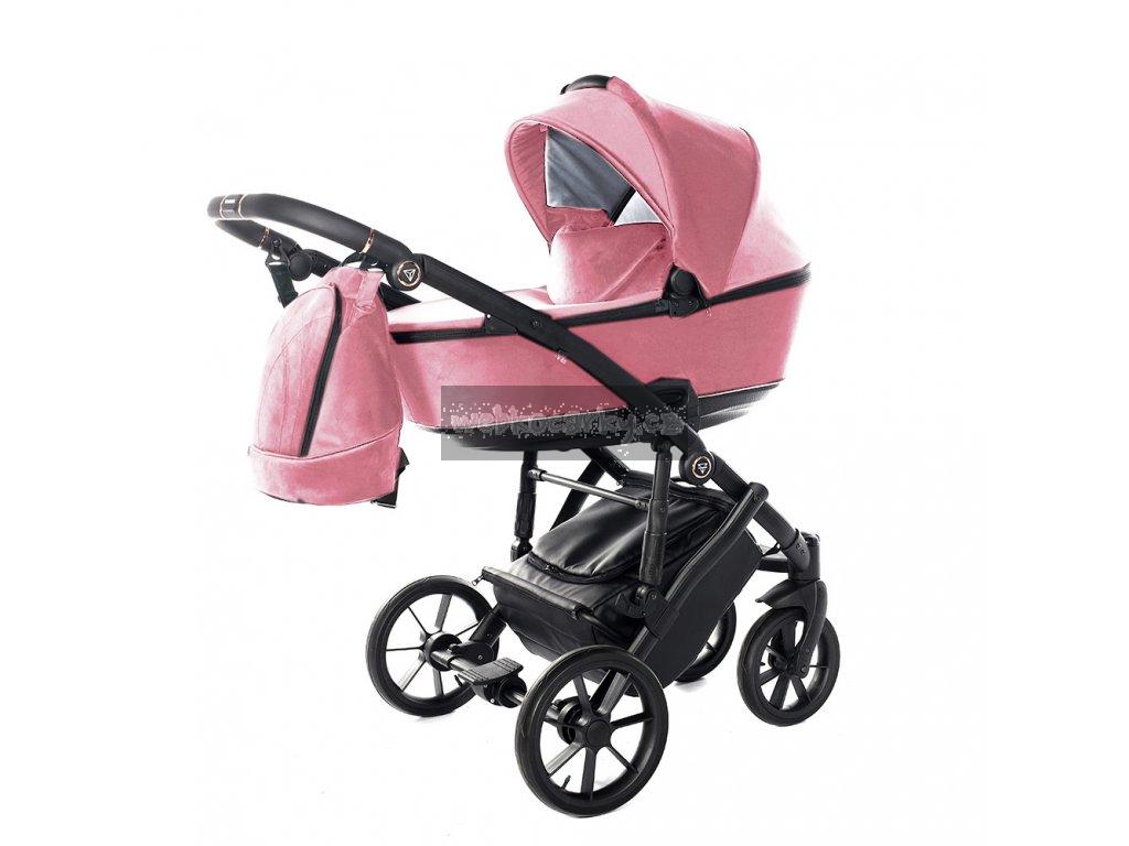 Sametová korba dodává kočárku elegantní vzhled.