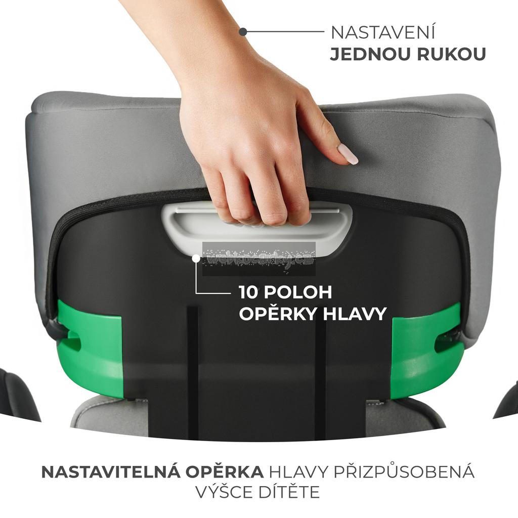 Opěrku hlavy autosedačky můžete nastavit jednou rukou. Má až 10 úrovní nastavení, což vám umožní dokonale přizpůsobit opěrku hlavy výšce vašeho dítěte. Nezapomeňte, že pouze správně nastavená může účinně chránit hlavu vašeho dítěte při nárazu!