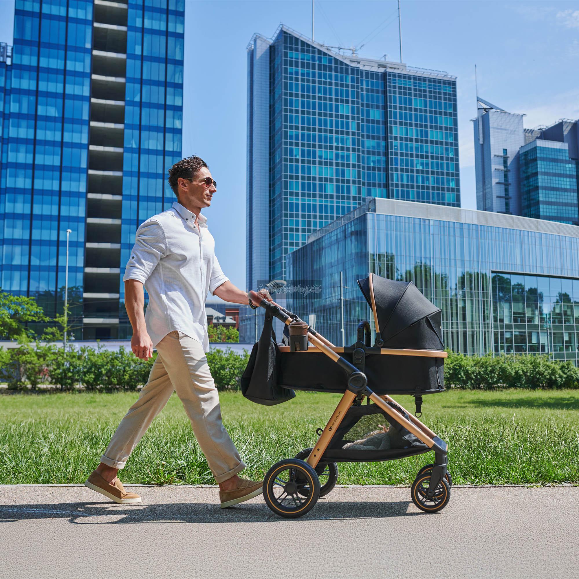 ESME je multifunkční dětský kočárek 3 v 1, který vás okouzlí svou funkčností a elegancí. Zaujmete pozornost krásným, moderním designem – decentní barevné provedení a pečlivě zpracovaný rám zajistí, že si každodenní procházky s dítětem zamilujete ještě víc. Kočárek oceníte také díky velké vaničce s ventilačním panelem, kterou ve třech jednoduchých krocích přeměníte na sportovní sedadlo. Toto řešení 2 v 1 vám ušetří místo při skladování jednotlivých částí.