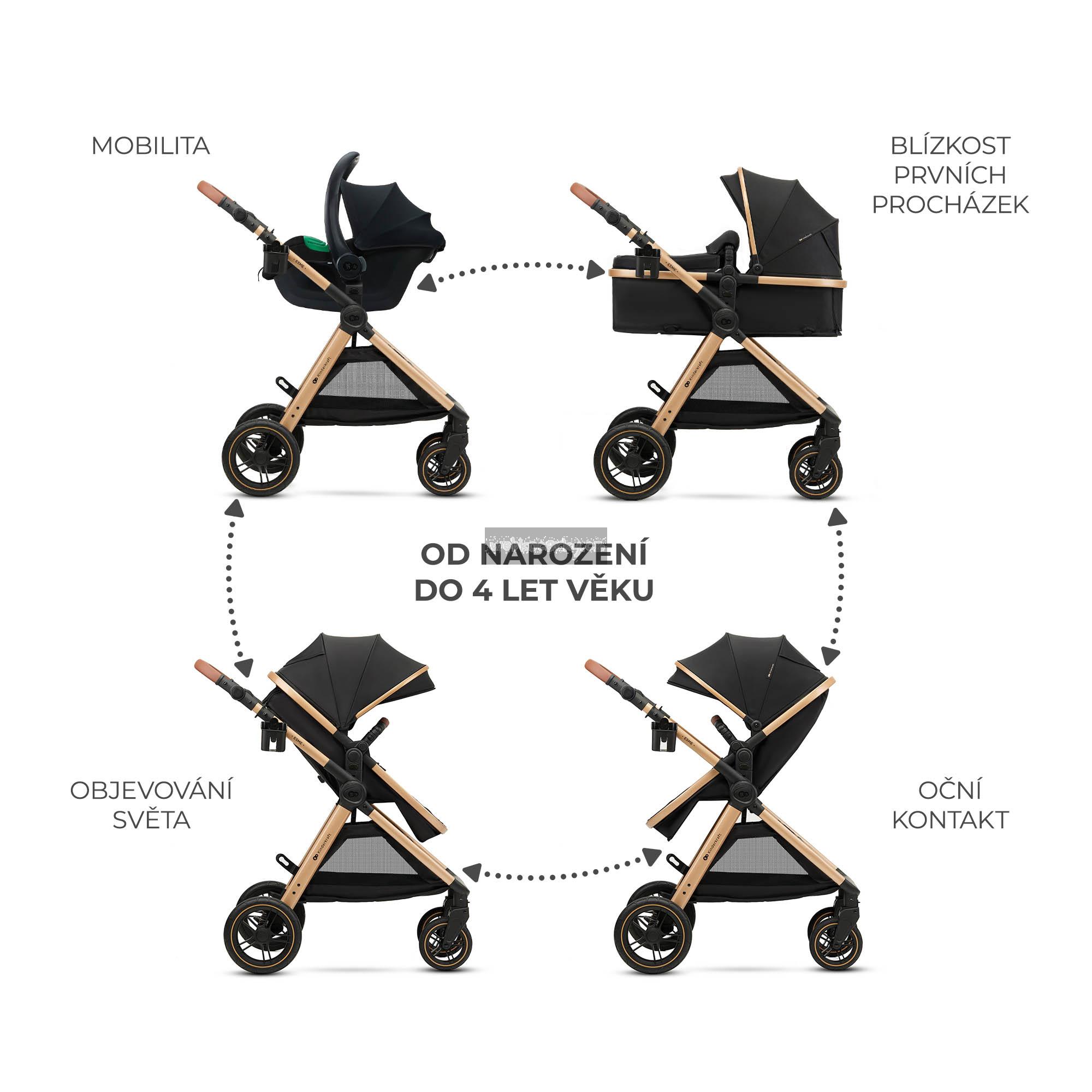 KINDERKRAFT Kočárek kombinovaný 3v1 Esme Pro Pure Black