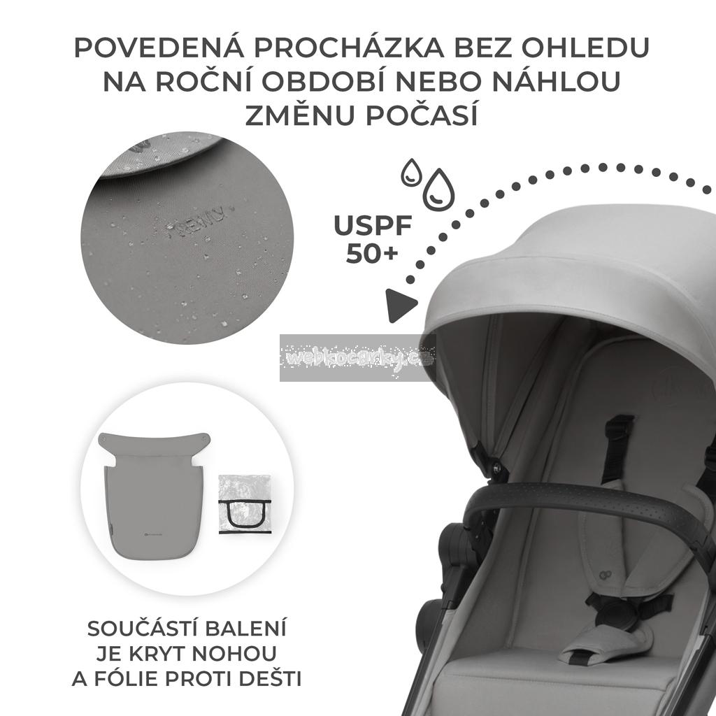 - Stříška vyrobená z nepromokavé látky s UPF50+ filtrem