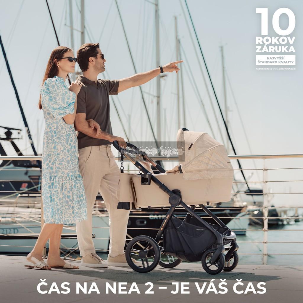 Toto je NEA 2 - multifunkční kočárek 2v1, který vzbudí váš zájem kompaktním designem a koly do každého terénu. Velká kola vám bez větších problémů umožní překonat vysoké obrubníky či nerovné městské stezky. NEA 2 je odpovědí na potřeby moderních rodičů, kteří hledají stabilní, pevný, ale přesto dobře ovladatelný kočárek. Okénko na stříšce vám umožní snadnou kontrolu, zda batole během procházky usnulo, a když se náhodou stane, že dítě kočárek zašpiní - potah na praní lehce stáhnete. Brzda STOP & RIDE umožňuje snadné zajištění a odjištění kočárku a jednoduchý systém skládání a praktická řešení jako jsou SELF STANDING nebo AUTO LOCK usnadňují přepravu a skladování.