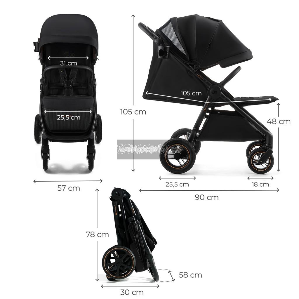- Lze okamžitě složit jednou rukou do kompaktní velikosti, takže je ideální pro cestování. Skládání směrem dovnitř chrání látku sedačky před znečištěním a relativně lehká konstrukce umožňuje kočárek snadno přenášet i s dítětem v náručí.
