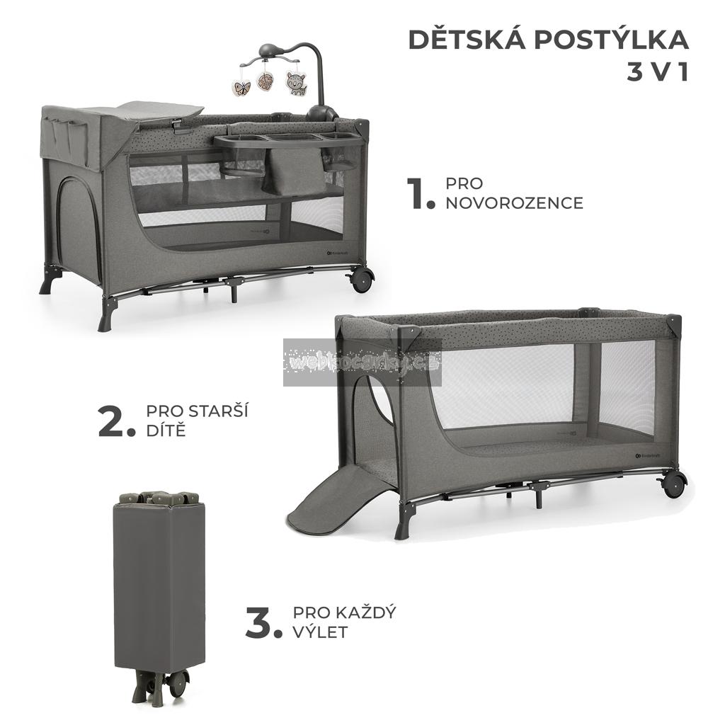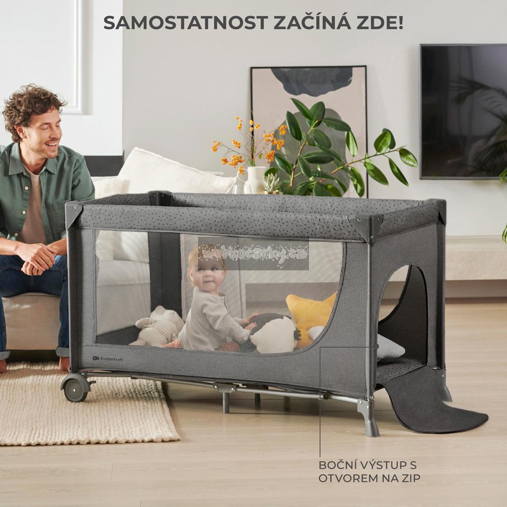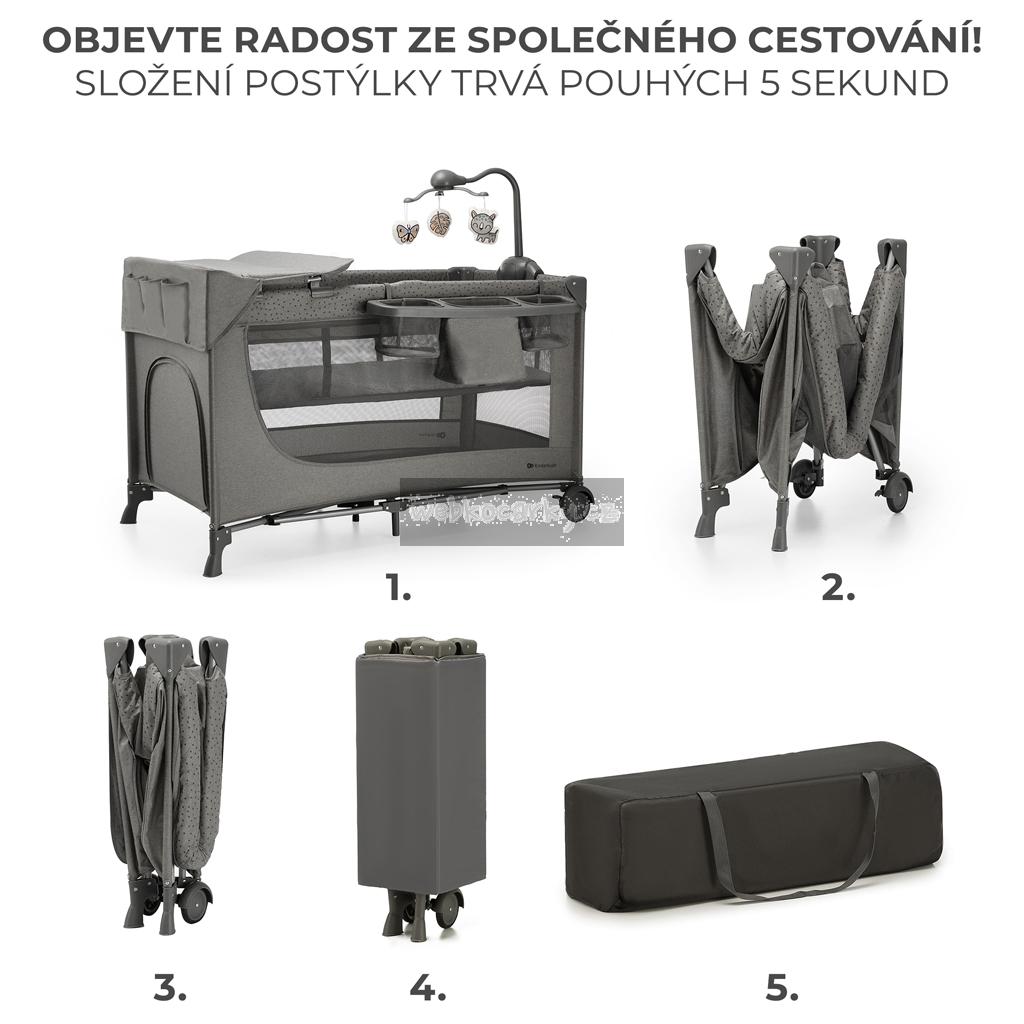 KINDERKRAFT Postýlka cestovní Joy 2 s doplňky Dark grey