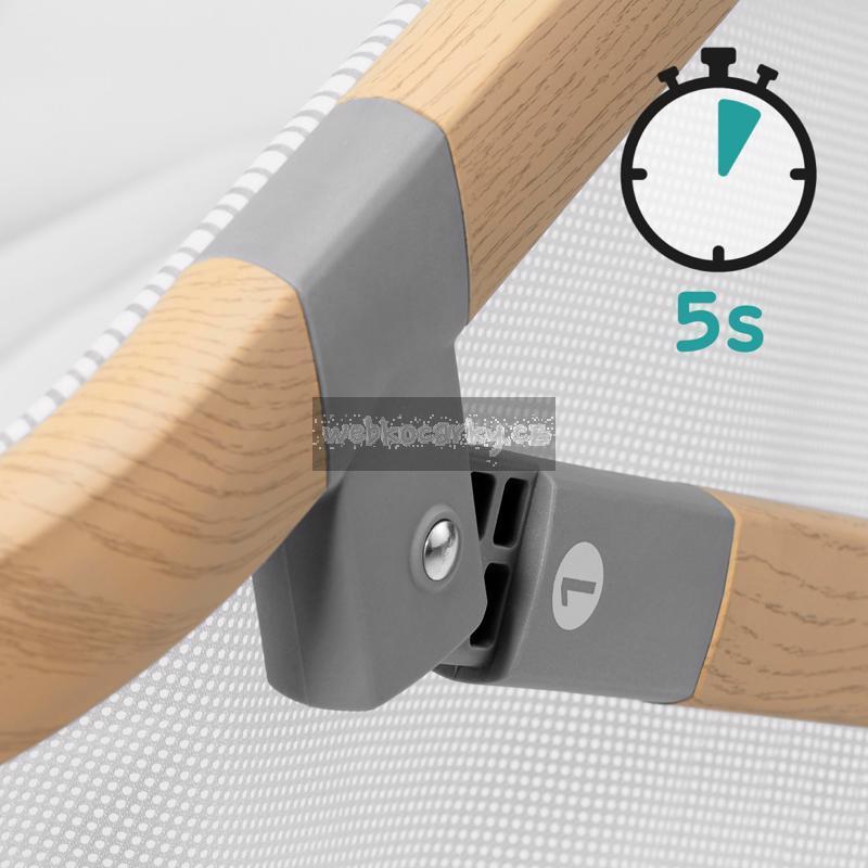 - skládání šité na míru potřebám rodičů – rychlé a nevyžadující žádné nástroje, skládá a rozkládá se do 5 sekund