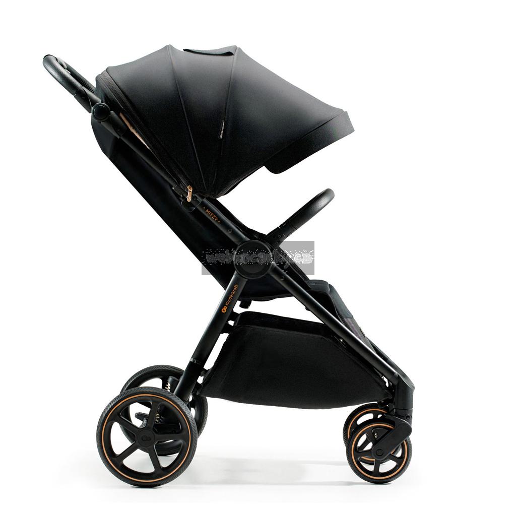 MITZY lze v okamžiku složit jednou rukou do kompaktní velikosti a vzít s sebou na cesty. Poradí si také v dešti a horkém počasí: velká nepromokavá stříška s UPF50+ chrání před deštěm, větrem a UV zářením. Stříška má větrací panel a okénko pro kontakt s dítětem, a když rozložíte opěradlo do polohy ležmo, můžete látku připevnit tak, aby mělo vaše dítě během spánku k dispozici dostatek vzduchu. Kočárek se prodává se zatahovací síťkou proti hmyzu, kterou lze schovat do opěrky nohou, a držákem na nápoje. MITZY má vše, co potřebujete k procházkám a dovolené.