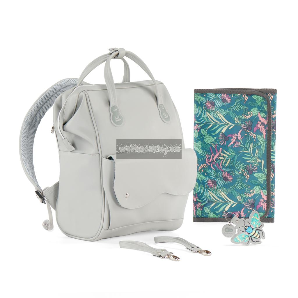 Souprava obsahuje přebalovací podložku. Díky tomu vás mokrá plenka nikde nepřekvapí – miminko můžete přebalovat všude, kde chcete. A navíc v hygienických podmínkách. Podložka ladí se vzorem batohu.