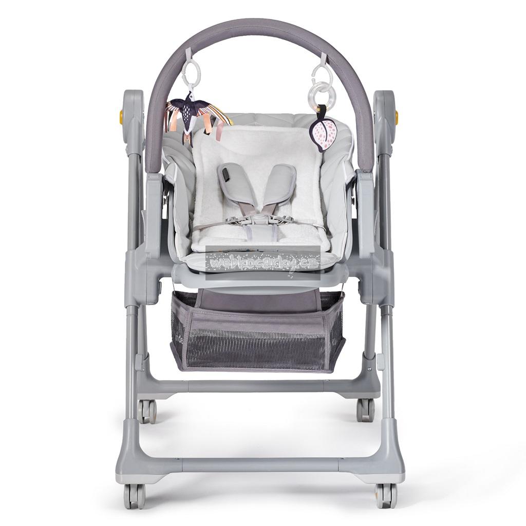 - k lehátku lze připnout hrazdu se 2 závěsnými hračkami (plyšovým listem s chrastítkem a plyšovou vlaštovkou s barevnými stuhami). Dítě se jimi jistě rádo zabaví.