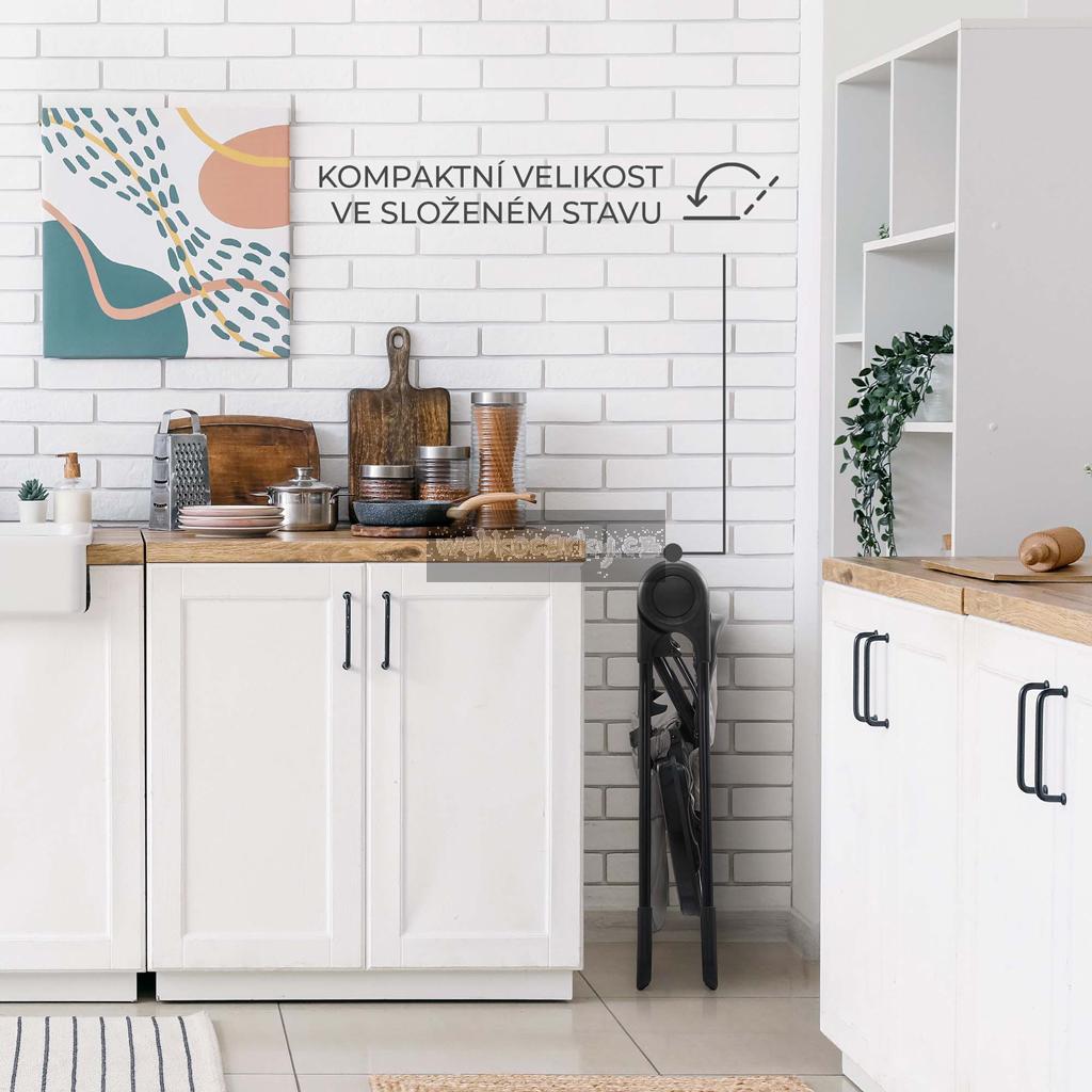 - Rozměry (složená): úzká, plochá konstrukce pro úsporu místa