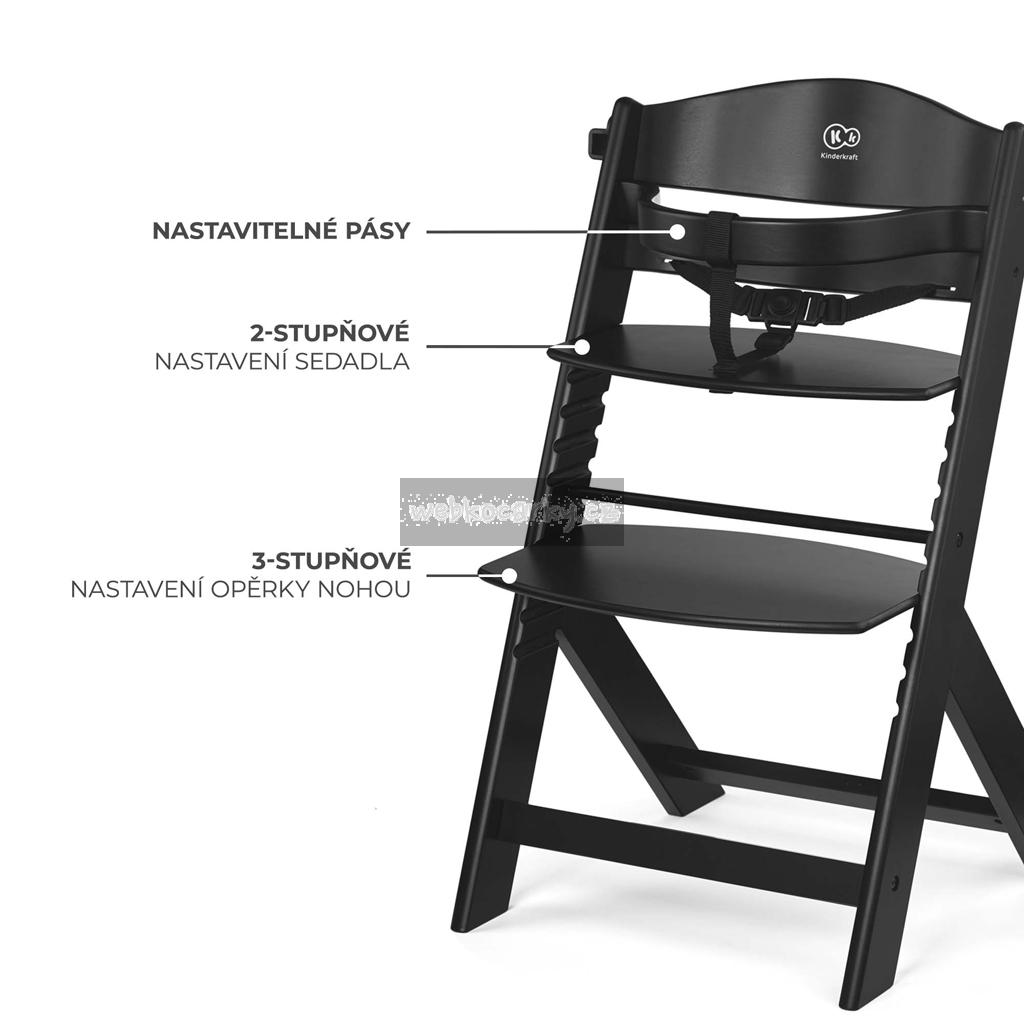 - pětistupňové nastavení opěradla pro vysokou židličku vám umožní lépe přizpůsobit ENOCK vašemu dítěti. V případě jídelní židličky může být opěradlo nastaveno ve 2 úrovních.