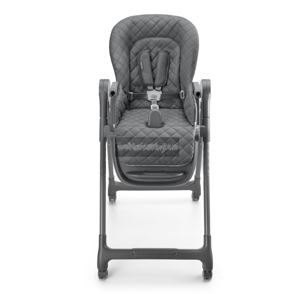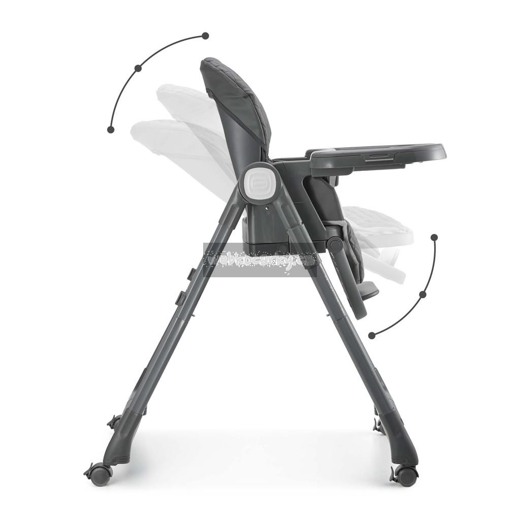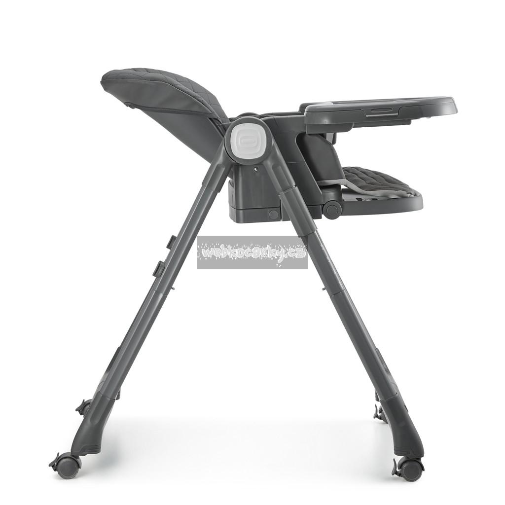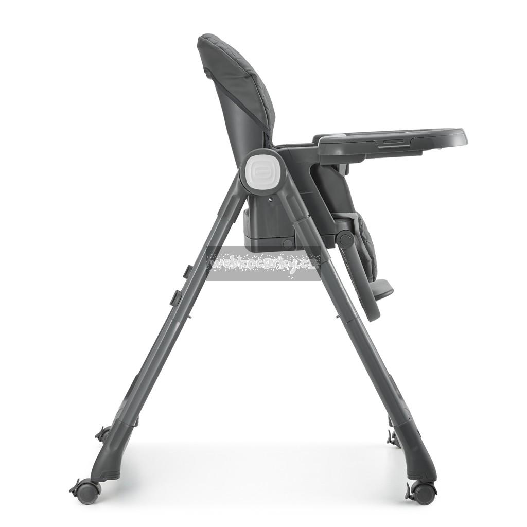 Integrovaná kolečka s brzdami, 5-bodové bezpečnostní pásy a měkké, snadno čistitelné PU čalounění zvyšují pohodlí a bezpečnost dítěte. Po složení má židle mimořádně kompaktní tvar, což usnadňuje její uskladnění. Zabírá minimum místa, takže se snadno vejde do rohu nebo skříně.