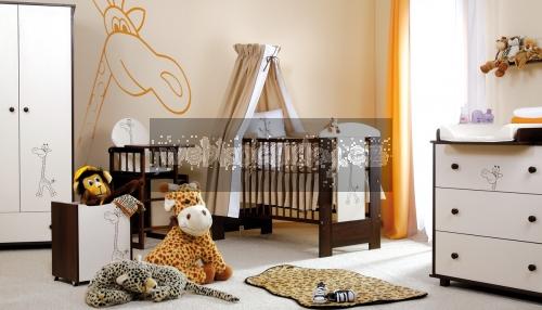 KLUPS Dětská postýlka SAFARI/LITTLE GIRAFFE ecru-orech