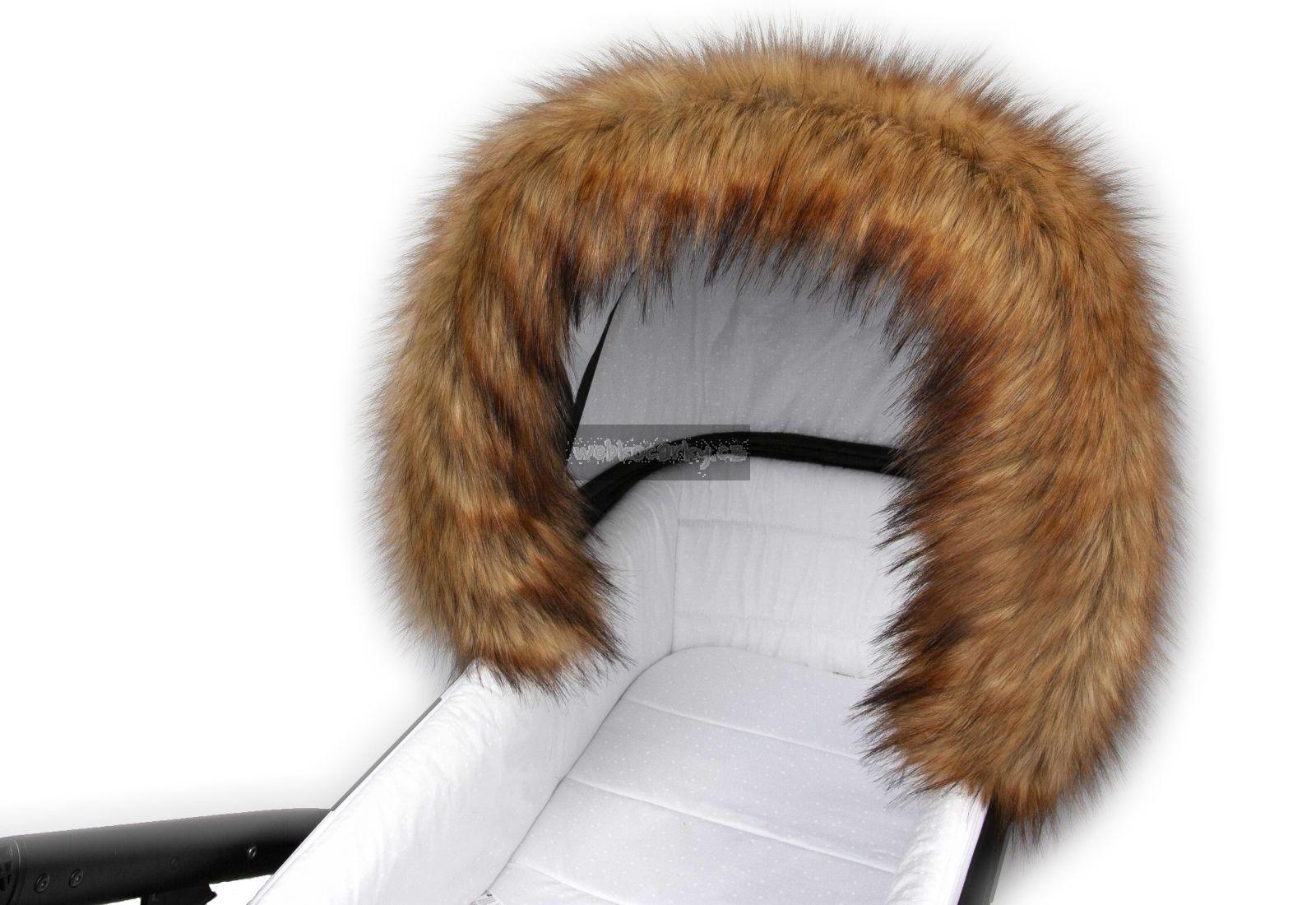 Stylový kožešinový okraj zdobí boudičku kočárku, chrání dítě před větrem a padajícími sněhovými vločkami, pomůže udržet teplo uvnitř.
