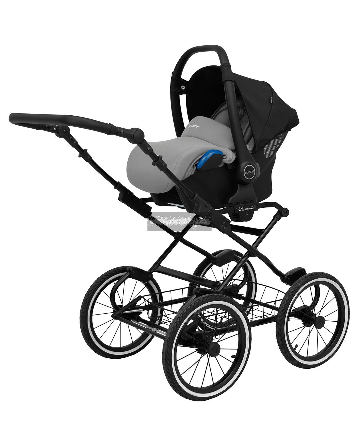 Krásný kočárek ROMANTIC je novinka od značky Kunert. Jedná se o první kočárek, který firma KUNERT postavila na velice populárních velkých kolech. Kočárek se vyznačuje hlavně svým moderním designem a také skvělým odpružením, které umožňuje mamince pohodlně houpat své dítě.