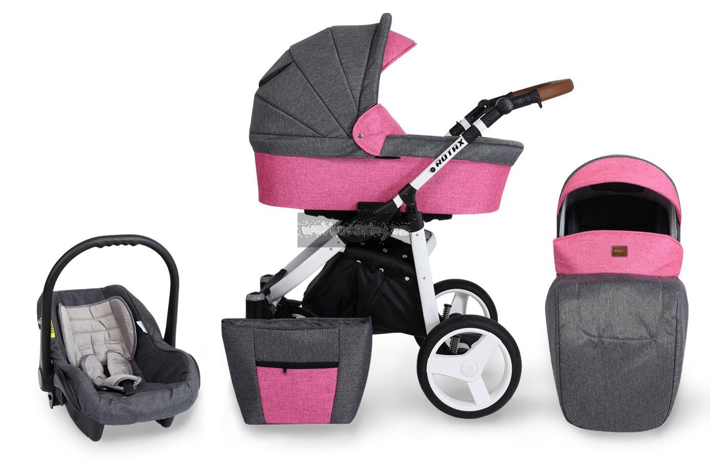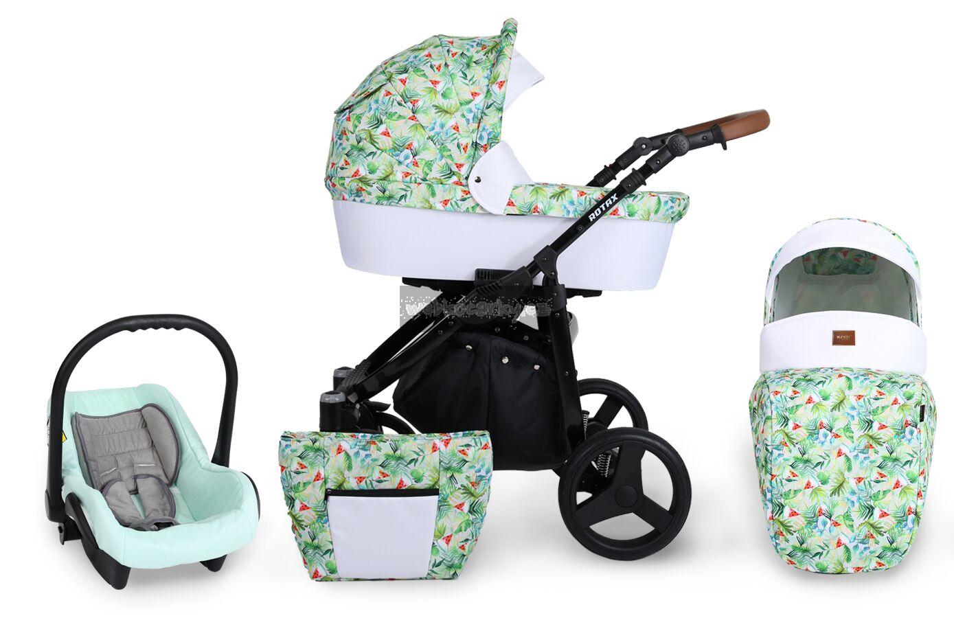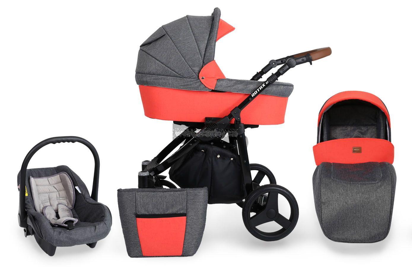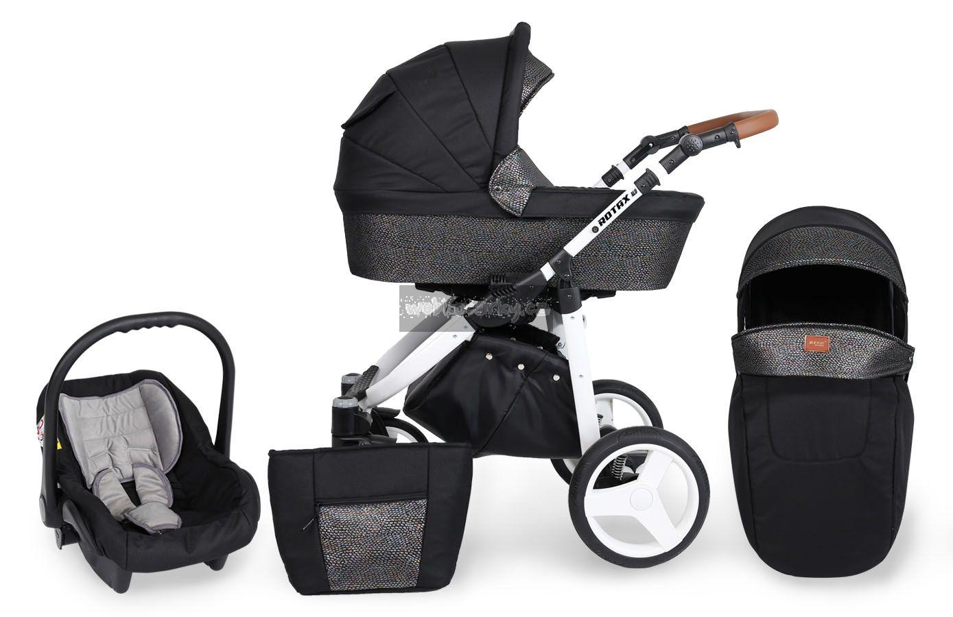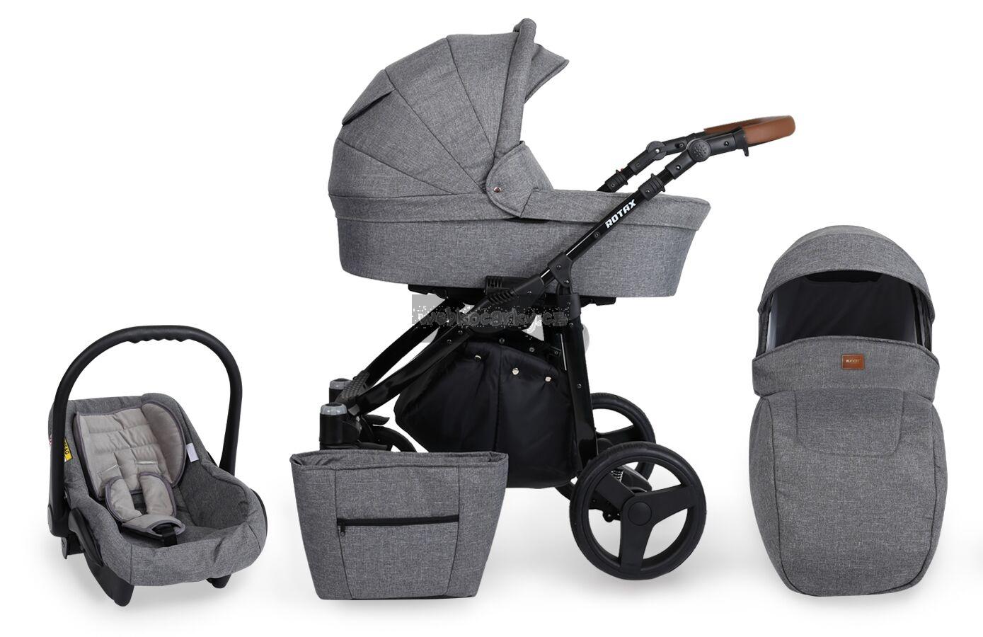 Autosedačka lze pomocí adaptéru připevnit ke kočárku. 3-bodové bezpečnostní pásy, nastavitelné madlo, odnimatelná boudička, nánožník, novorozenecká vložka, adaptéry pro uchycení na kočárek. Autosedačka může být připravena pro Iso-Fix Bázi (uveďte v poznámce u objednávky).