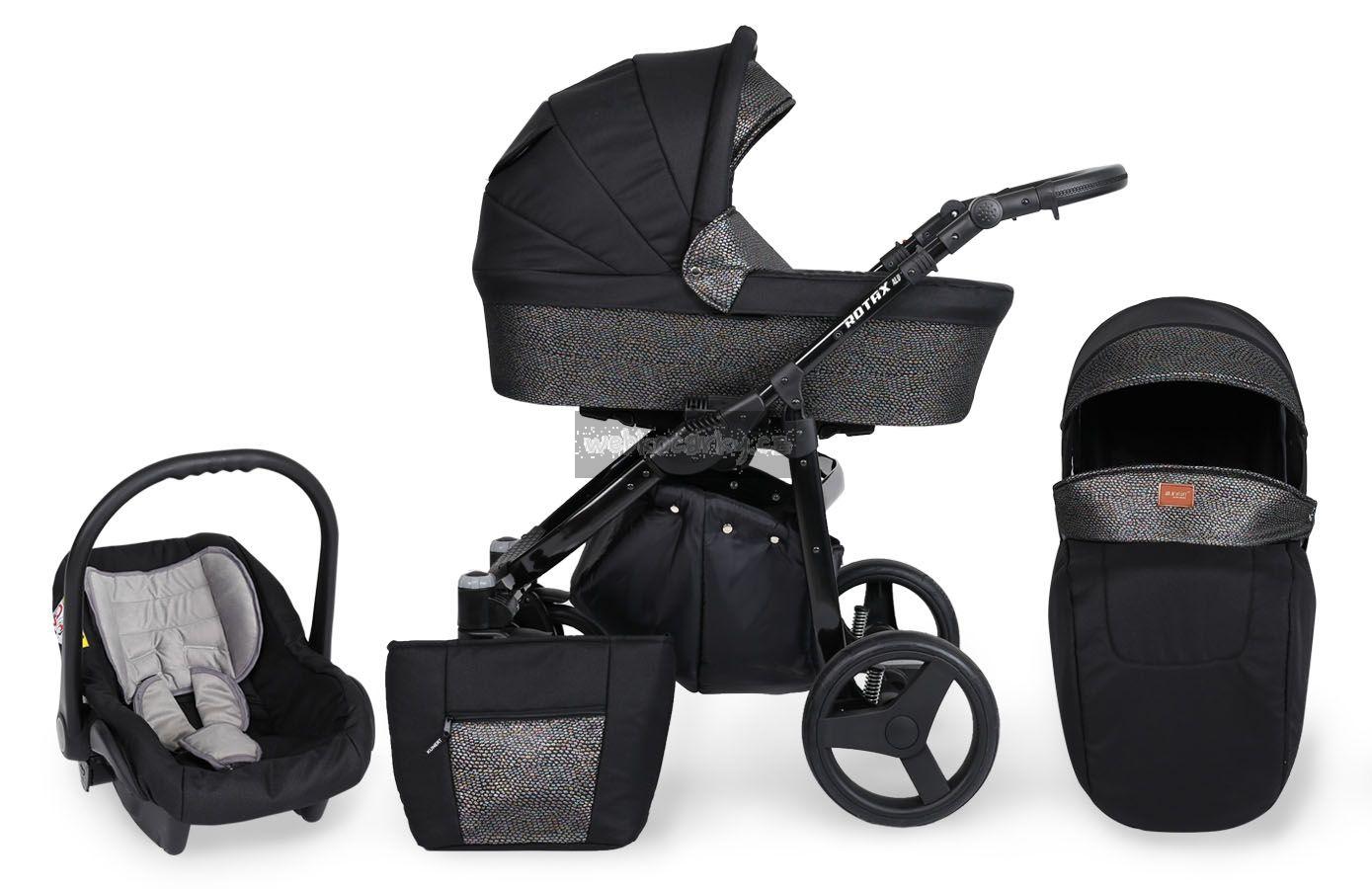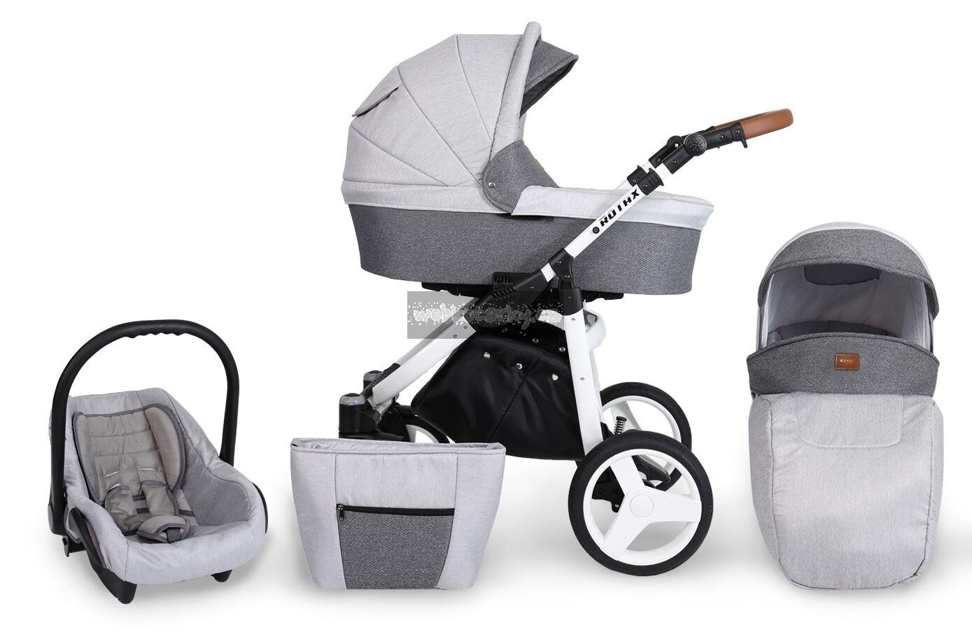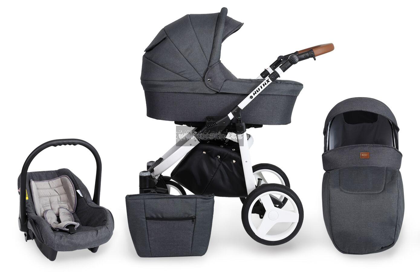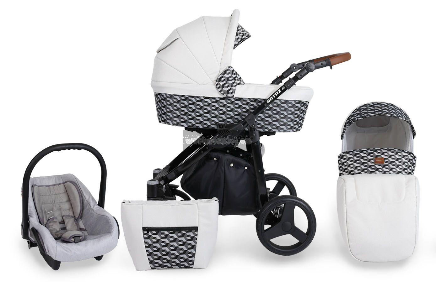 Autosedačka lze pomocí adaptéru připevnit ke kočárku. 3-bodové bezpečnostní pásy, nastavitelné madlo, odnimatelná boudička, nánožník, novorozenecká vložka, adaptéry pro uchycení na kočárek. Autosedačka může být připravena pro Iso-Fix Bázi (uveďte v poznámce u objednávky).