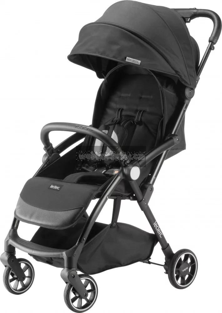 Leclerc Magic Fold Plus unikátní skládací mechanismus - skládání a rozkládání pouze pomocí jedné ruky, jedním dotekem zavěšení všech čtyř kol (z PU materiálu) praktická brzda, magnetická přezku bezpečnostních pásů, koženkové madlo před dítětem velkorysá prodlužitelnou sluneční stříškou (SPF 50+) s ventilačním a "peek a boo" okénkem sedák lze snadno napolohovat do tří úrovní - včetně té vleže nastavitelná opěrka nohou speciální upevňovací body pro přichycení přebalovací tašky součástí kočárku je držák nápojů, madlo před dítě, pláštěnka a transportní obal Technické parametry hmotnost: 6,6 kg nosnost: 22 kg nosnost nákupního koše: 3 kg rozměry rozloženého kočárku: 101,5 x 61 x 47 cm (výška x hloubka x šířka) rozměry složeného kočárku: 56 x 24 x 47 cm (výška x hloubka x šířka.