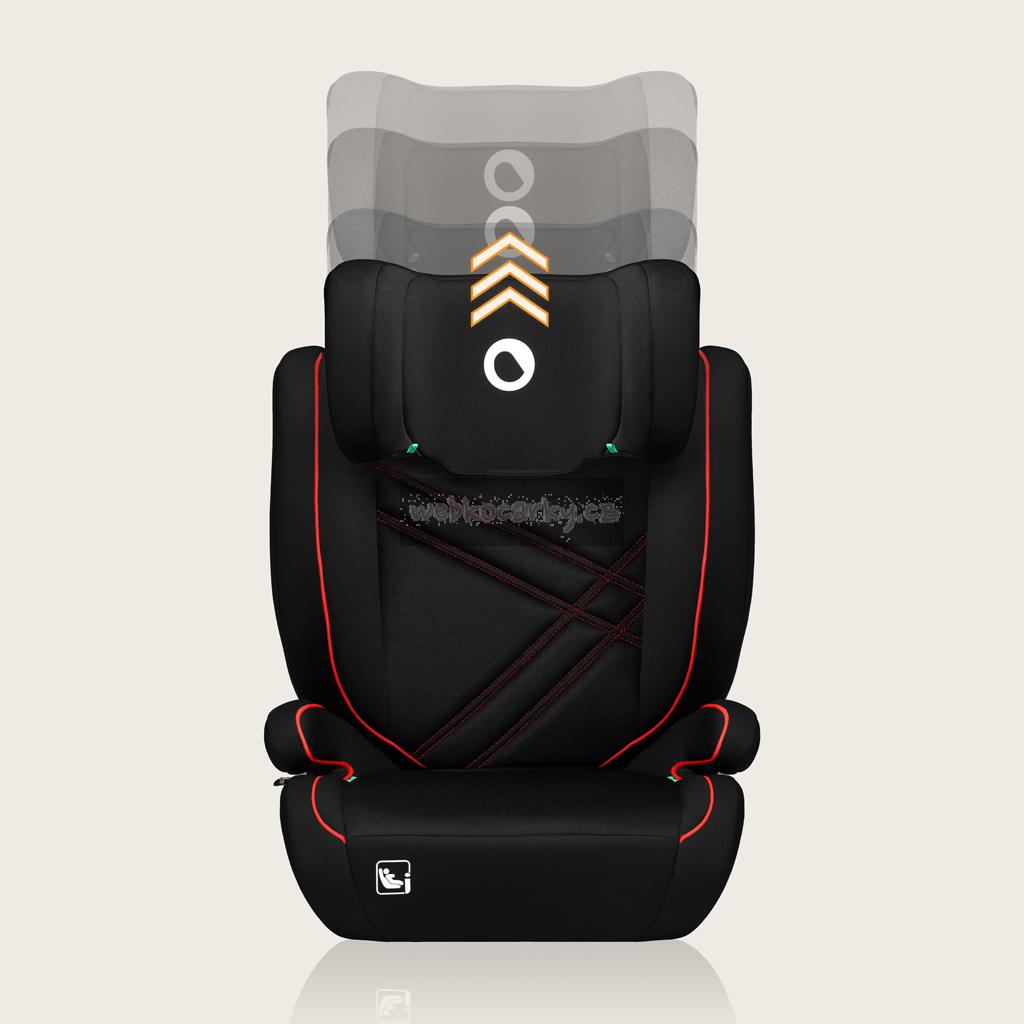 Nejvyšší bezpečnostní standard: Opěrka hlavy je vyrobena z PP plastu a pěny Memory Foam, která má vlastnosti pohlcující přetížení, díky čemuž chrání hlavu a krční páteř dítěte. Zase plastová vodítka pomohou nejen správně připoutat dítě, ale také udržují pás na správném místě.
