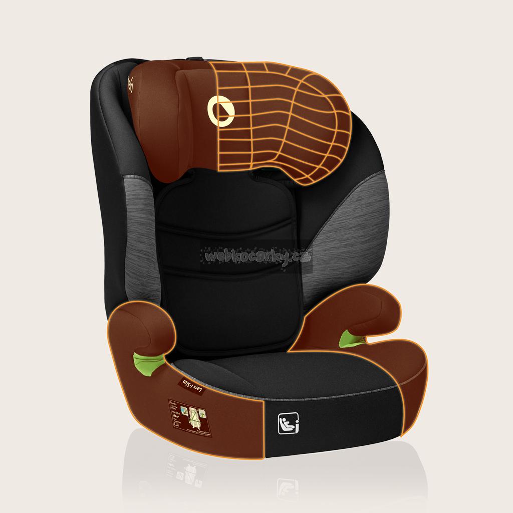 Lars i-Size je univerzální autosedačka v souladu s přísnou normou R129. Díky tomu splňuje nejvyšší bezpečnostní standardy. Představený model je určen pro montáž FWF, tedy po směru jízdy. Sedačka se upevňuje pomocí tříbodových bezpečnostních pásů, díky čemuž je vhodná do každého automobilu. Lars i-Size Black Grey je určena pro výškovou skupinu 100–150 cm. Široké sedadlo potažené EPE pěnou, ergonomické područky a nastavení opěrky hlavy do 10 poloh zaručují, že autosedačka je nejen bezpečná, ale i pohodlná. Opěrka hlavy je navíc vyztužena pěnou Memory Foam, která chrání nejcitlivější místa – hlavu a krční páteř.