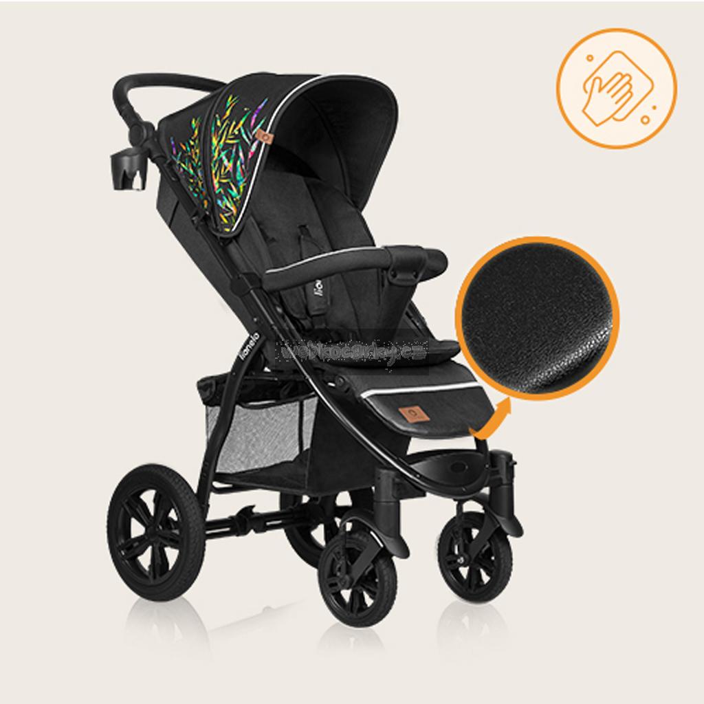 Jednoduché udržování čistoty: Opěrka nohou je potažena ekokůží v místě, kde se obvykle nacházejí boty dítěte, aby bylo možné jednoduše odstranit veškeré nečistoty. Potah kočárku a koš můžete prát v ruce.